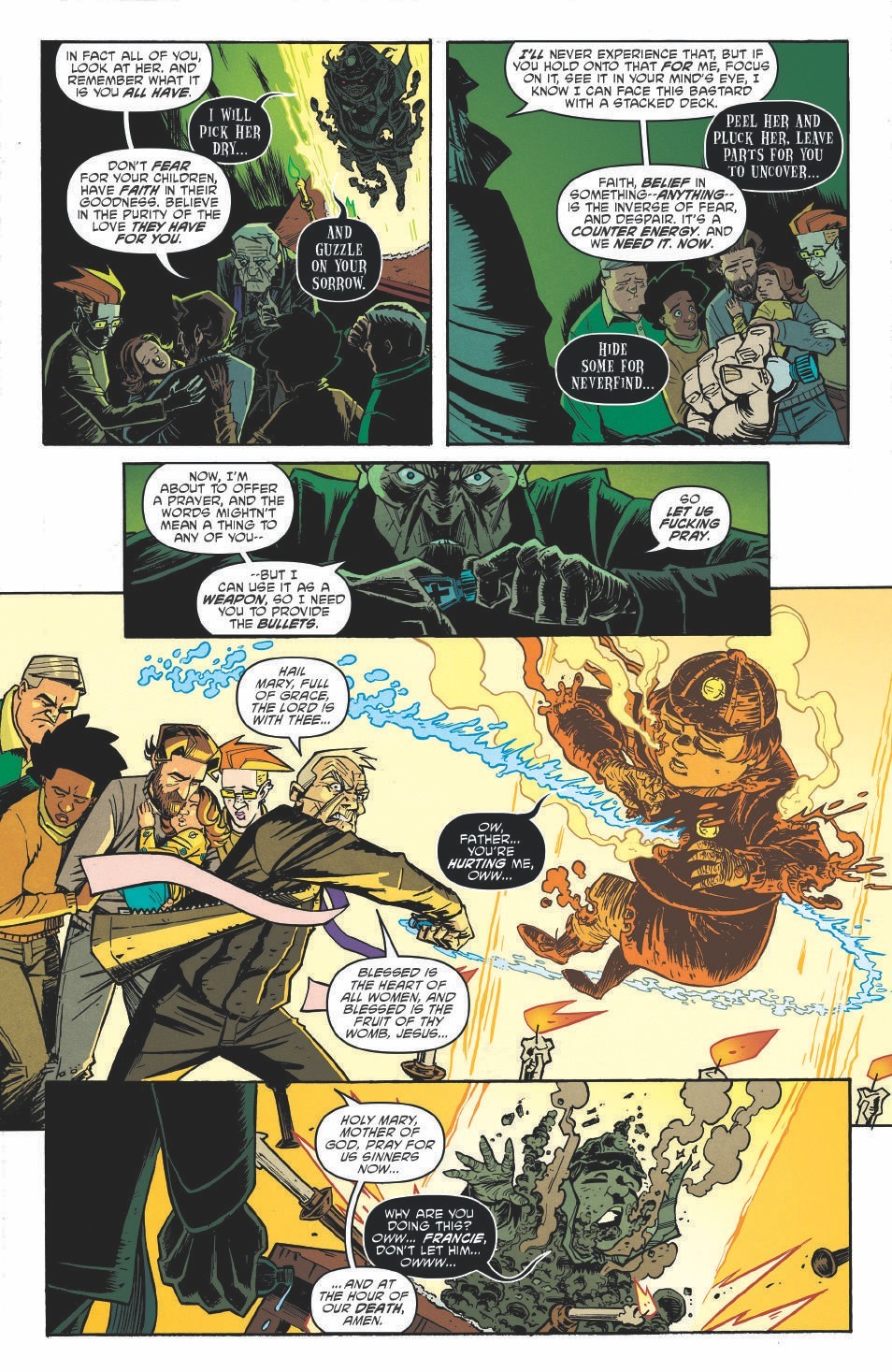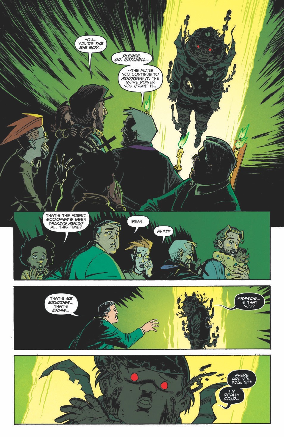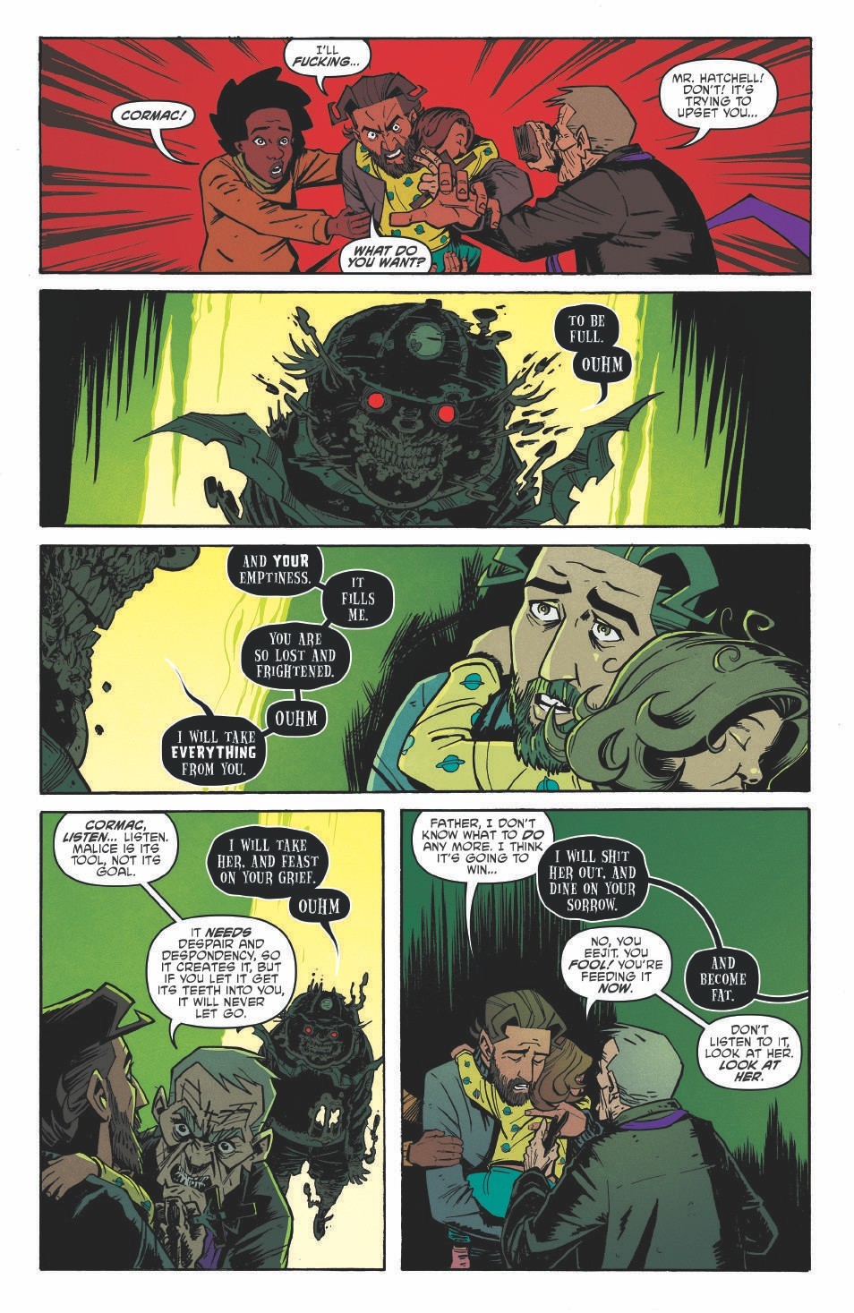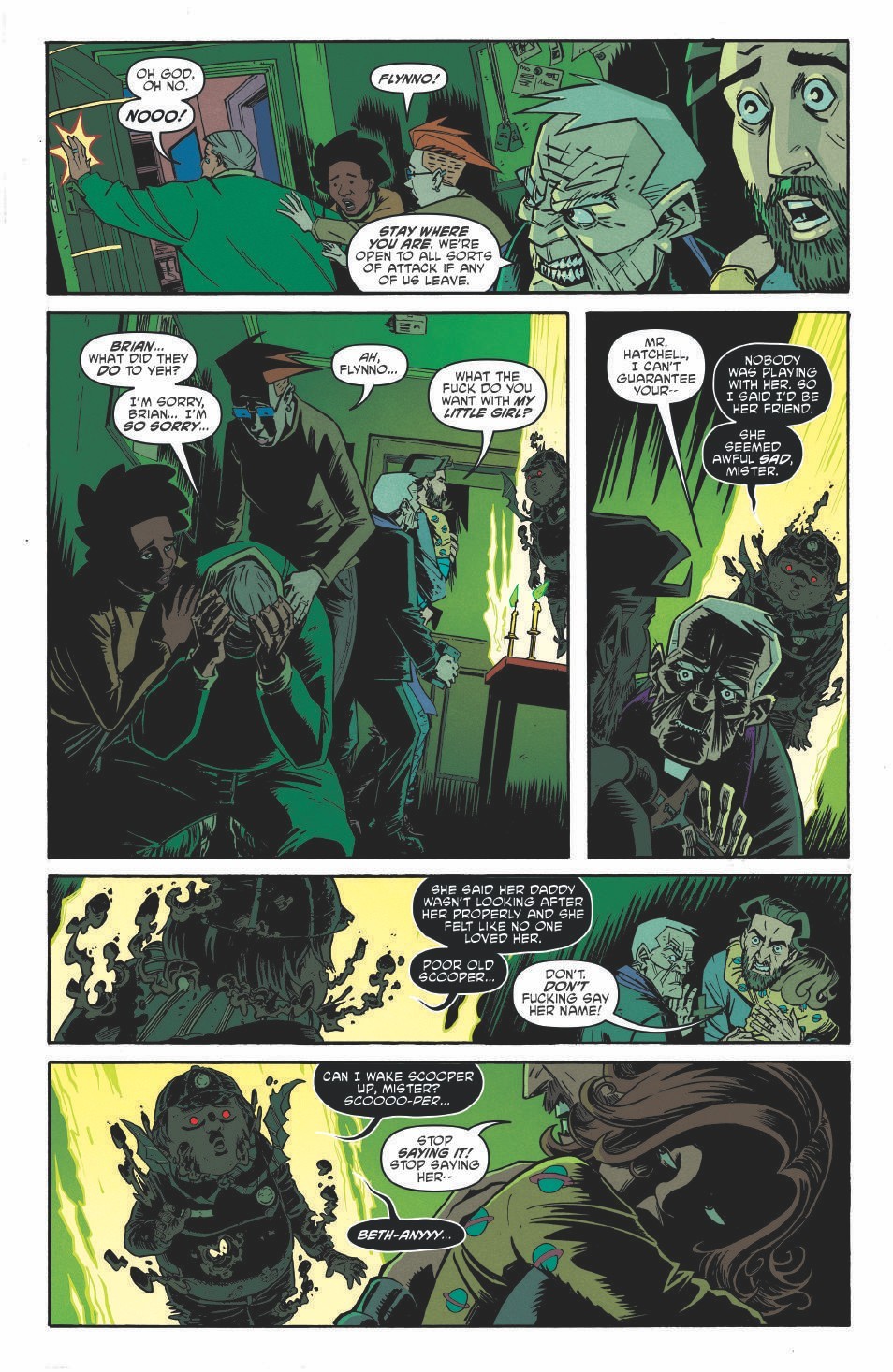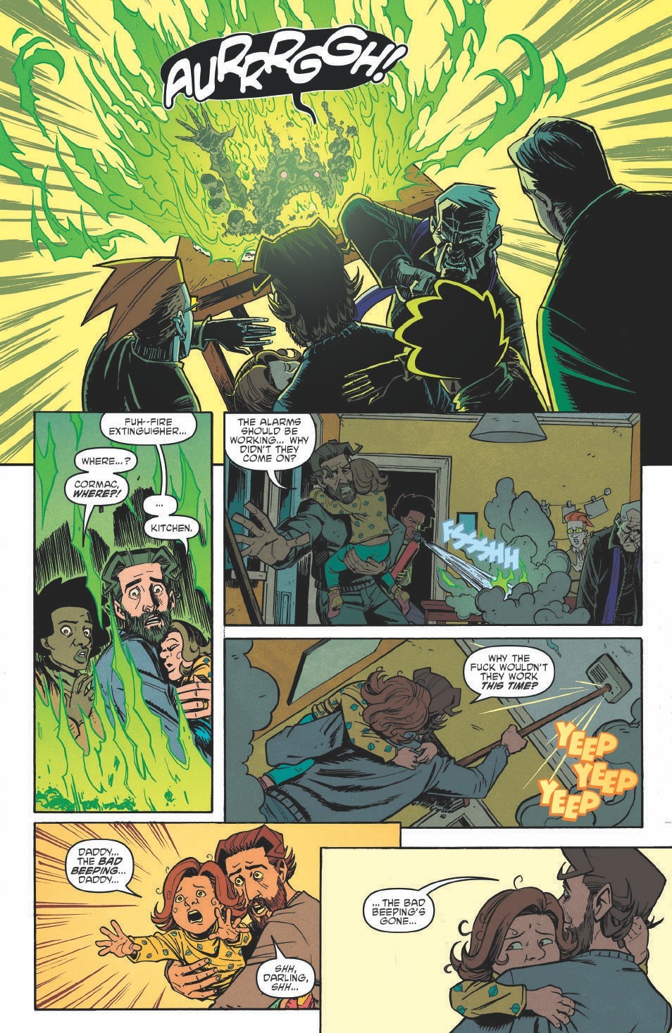 The series delivers its strength in the setup but then getting the reader to question what’s real, if anything. Is this just parents breaking down and losing it? Is there really an evil force out there. The series does a great job leaving you guessing as it builds. But, no matter what, the series focuses on the relationships between the parents and the parents and the kids to build a group of characters you care about.