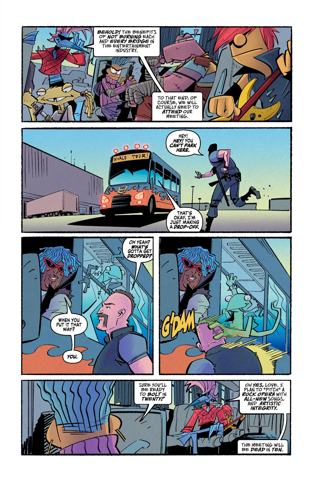 It’s Blood, and Sugar-Free Sex Magic when Birdie and Gurgle crash the peaceful home of former castmate Spellya Spellington, but they aren’t the only ones blazing into town. Meanwhile, Tony and Herbert try to free some “canceled” old stars from Hollywood’s Problem Attic. A candy coating of pop culture madness, humor, cartoonishly absurd hyper-violence, and just enough hope to keep holding on.