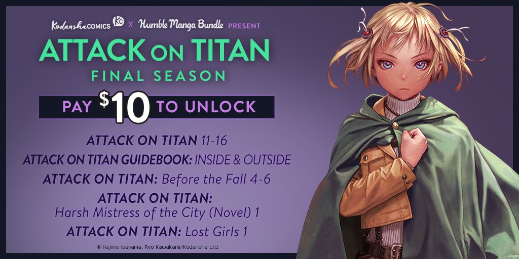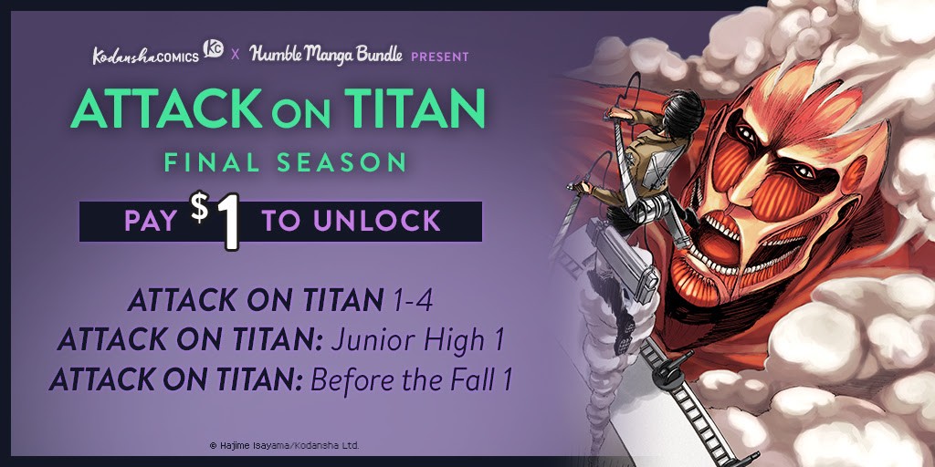 Just in time for the final season of the hit anime, Kodansha USA and Humble Bundle have teamed up to launch the Attack on Titan Final Season Humble Manga Bundle! Right now, fans can get over $750 worth of the original Attack on Titan digital manga, its spinoff series, light novels, guides, and even audiobooks, for only $20. It’s a perfect jumping on point for new fans of the franchise or those that only know the anime, as well as a great opportunity for existing fans to build-up their Attack on Titan library!