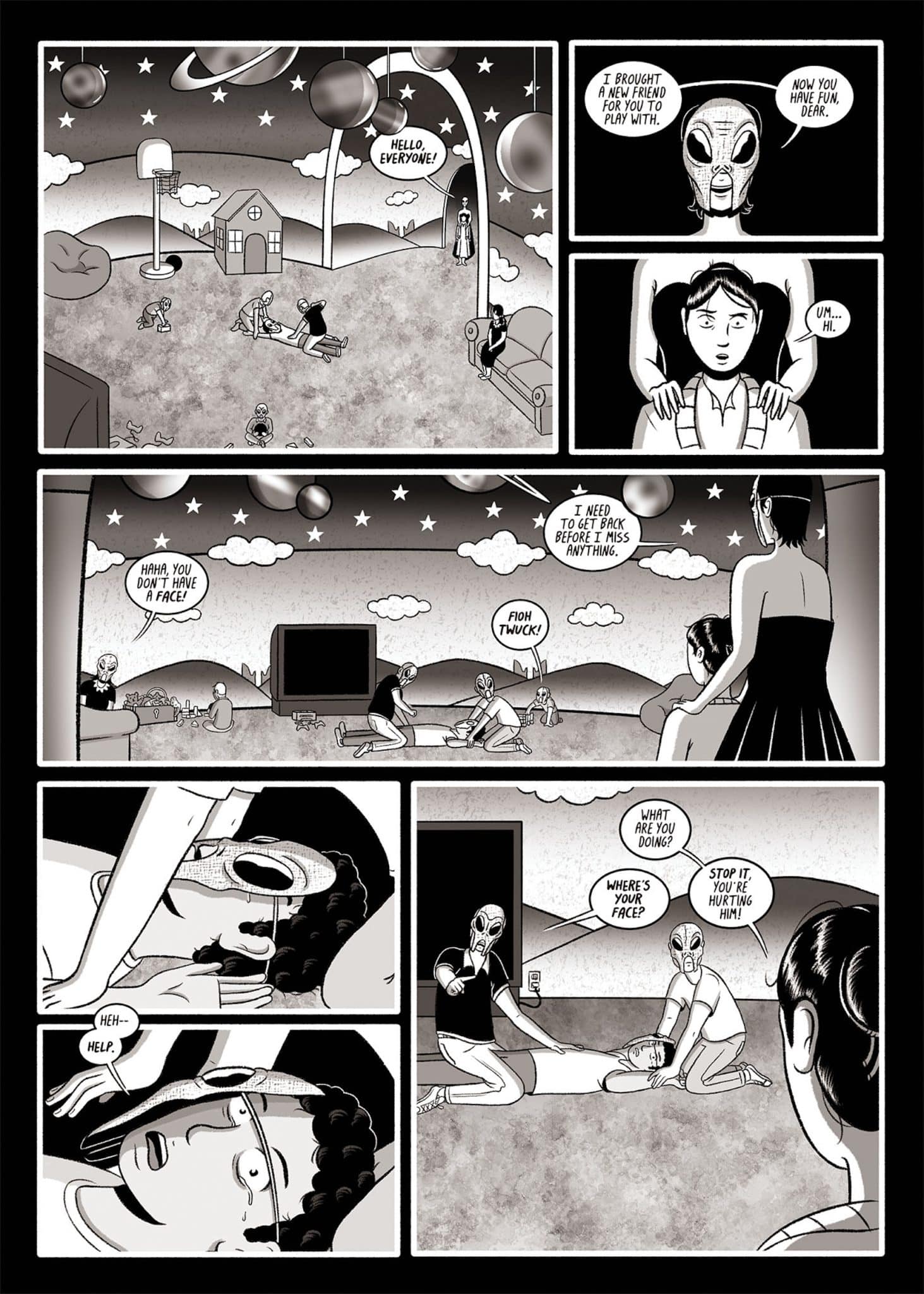 It’s still a bit of a mystery to me why I’ve written and drawn a graphic novel about alien abductions. My book, LITTLE VISITOR & OTHER ABDUCTIONS, is a collection of three thematically linked stories, and I’m sure most would assume that it was an impassioned belief in the reality of UFOs and alien phenomena that led me to make it. The truth is while I believe alien life exists in the cosmos I’m fairly agnostic about the notion that they have actually visited and interacted with human beings. I’m open to it, and would like to know more, but for now I’m on the fence. Why, then, would I spend years making this book?