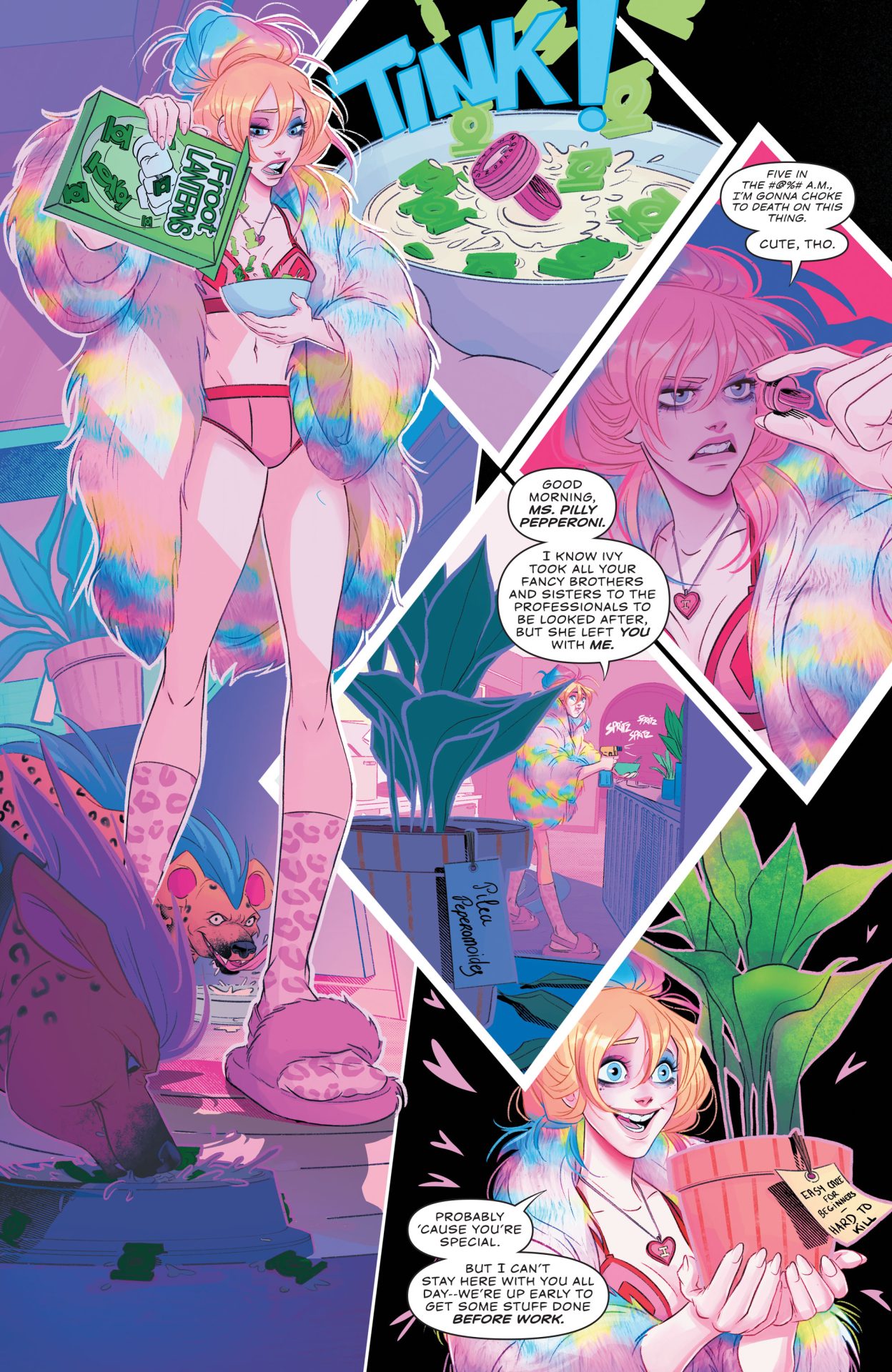 This just in, ya gal’s been cursed! And now she’s gotta use magic and travel the Multiverse and deal with…cartoon fish and higher beings? What in the Earth-6 is going on?! Not to mention, I still got my court-mandated community service, and Two-Face and his goons just won’t leave ya girl alone. Someone’s gotta teach ’em a lesson–and I’m not just sayin’ that cuz I’m a professor! Also featuring another very special in-continuity dream of Harley Quinn as told by the two individuals who know me bestest of all…my hyenas, Bud and Lou!