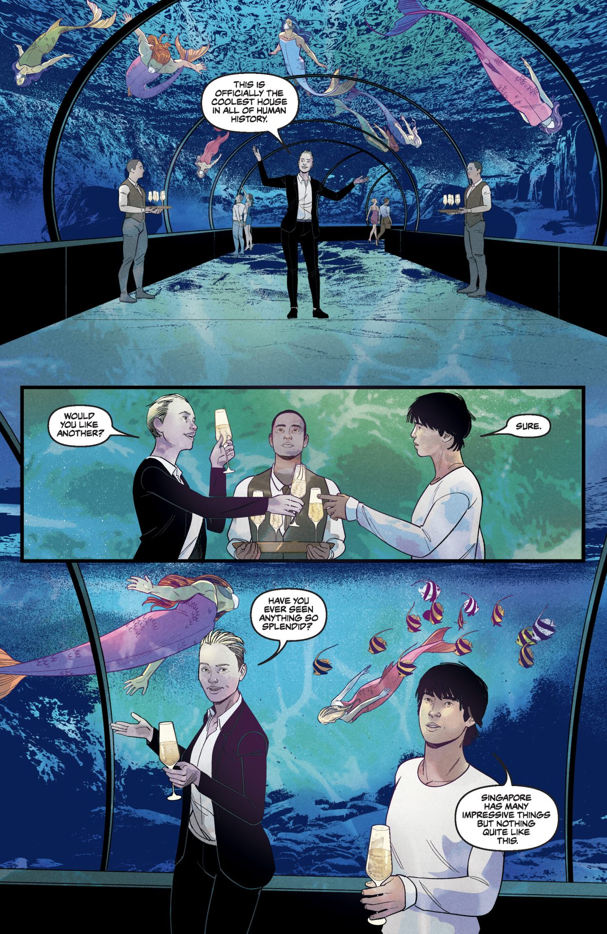 The title’s manufacturing reference isn’t there for show either. The android children are actually made in Korea, which allows Holt and Schall to add an entirely different but interconnected story thread that, in this case, sees a Korean programmer trying to crack a code that could have an effect in android behavior.