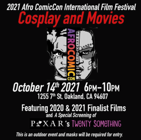 Join AfroComicCon for an outdoor film screening featuring selections from Afro ComicCon’s Sci-fi, Horror, and Animation Film Festival! These are films created by black and POC filmmakers from all over the world. We’ll be showcasing winners and finalists from 2020’s Film festival in addition to the top finalist from this year’s festival. We’ll also be having a special screening of Pixar Animation Studios recent Spark Short, Twenty Something. An animated short film Written and Directed by black Storyboard Artists and Bay Area native Aphton Corbin.