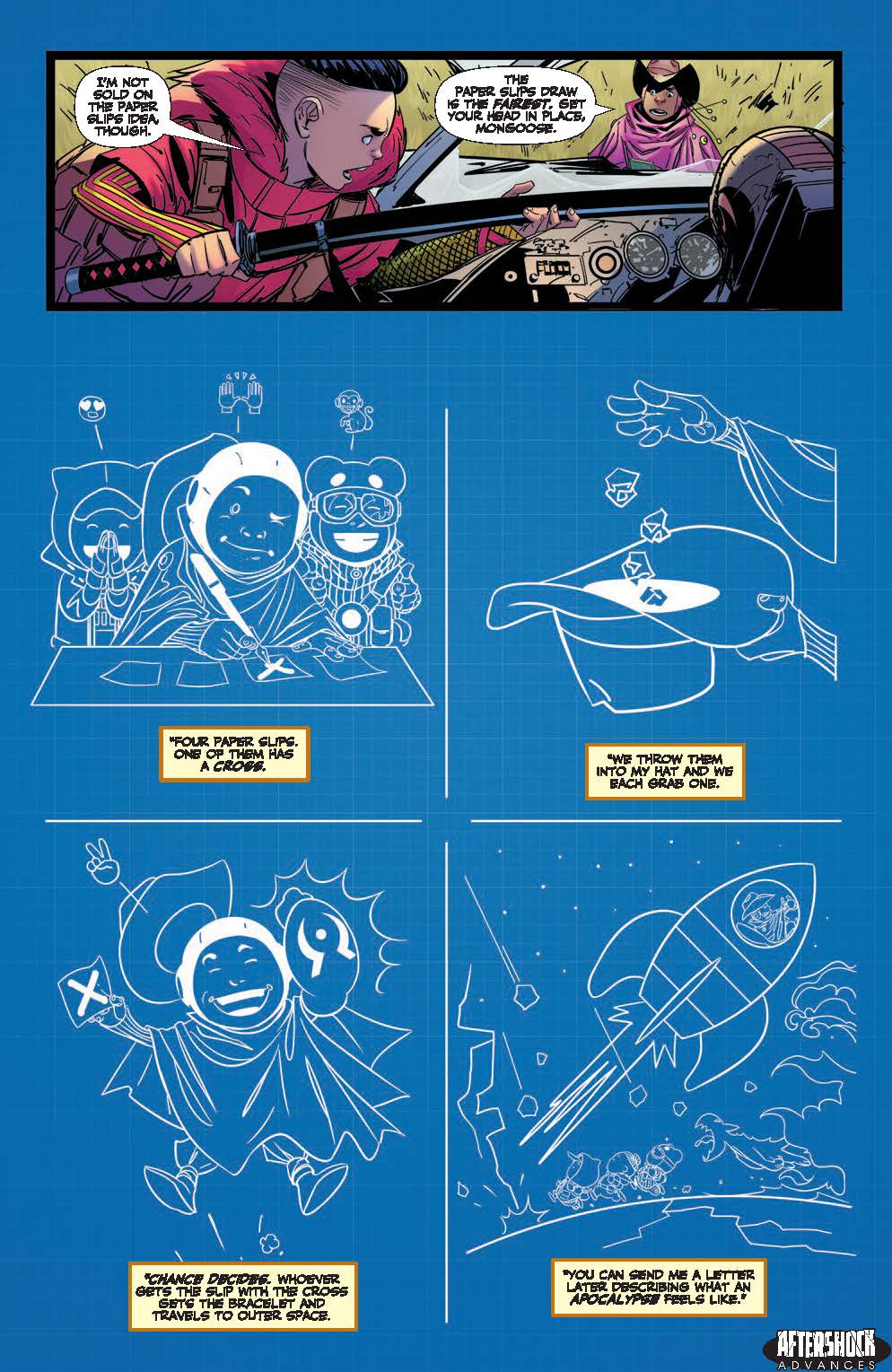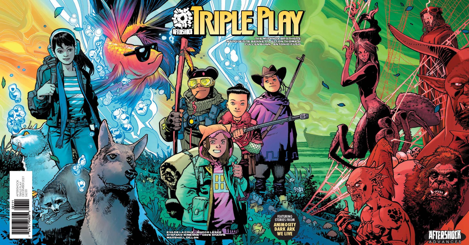 Another story of The Wake, with a fish rescue mission; a monstrous tale from the Dark Ark; and a journey into the Wastelands as humanity’s time ticks down — the AfterShock Triple Play combines three must-read free comic book day issues featuring characters from WE LIVE, ANIMOSITY and DARK ARK into one highly collectible volume!