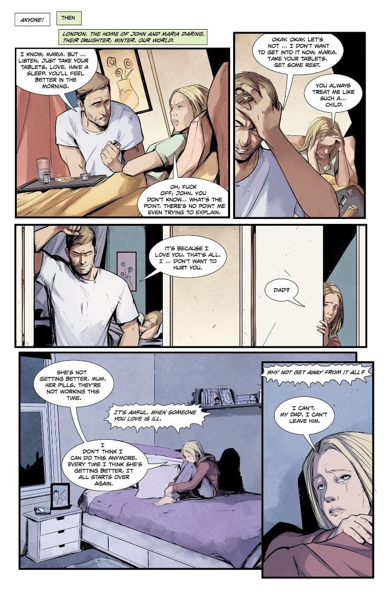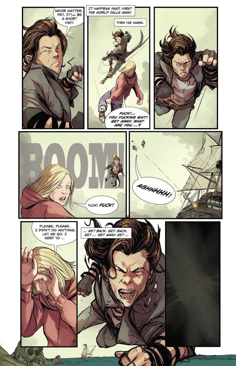 The art by Giorgio Spalletta is solid. With color by Francesco Segala, color assist by Agnese Pozza, and lettering by Jeff Eckleberry, the comic is able to mix action as well as quieter paranoia. From an opening that feels like a big budget sequence, the comic shifts to the duo hiding out but it’s all presented in a way that’s tense and makes you wonder what will happen next. You trust no one and through art that’s rather sparse as far as people, it allows you to focus on each person presented and each setting and wonder if anything will happen.