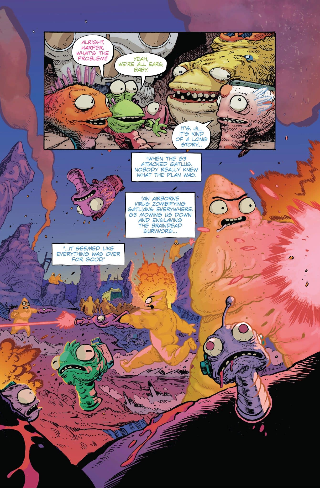 Someone whose name rhymes with “Pink Panther” has puked at the bus stop, and no one is going to clean it up. Thankfully, nature finds a way. A Gnartoons mini-comic by James the Stanton, presented in brilliant neon!