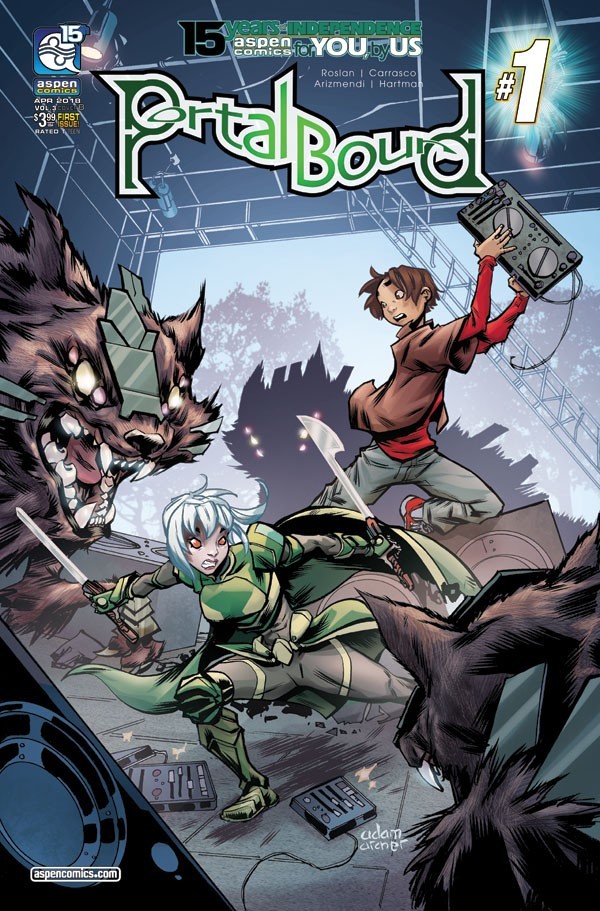 PortalBound #0 written by Mark Roslan and Gabe Carrasco with art by Alex Arizmendi and Wes Hartman is a new sci-fi/fantasy/action-adventure mini-series slated for five issues debuting February 7th with covers by Arizmendi and Adam Archer. PortalBound #0 will be offered for $1.50.