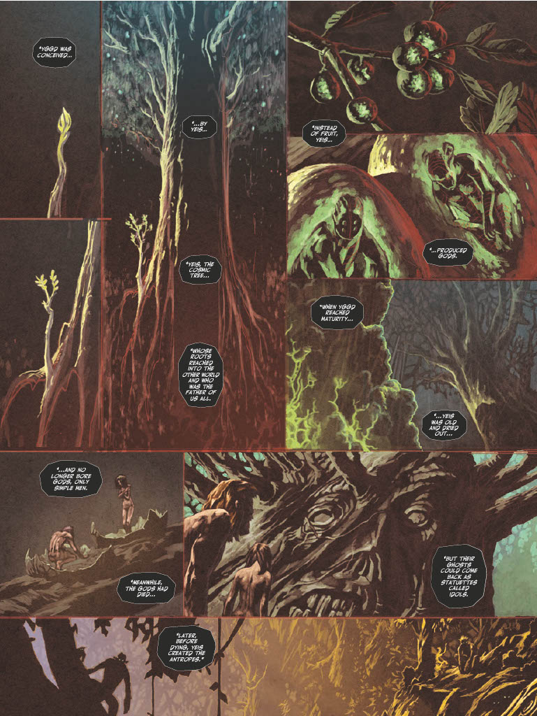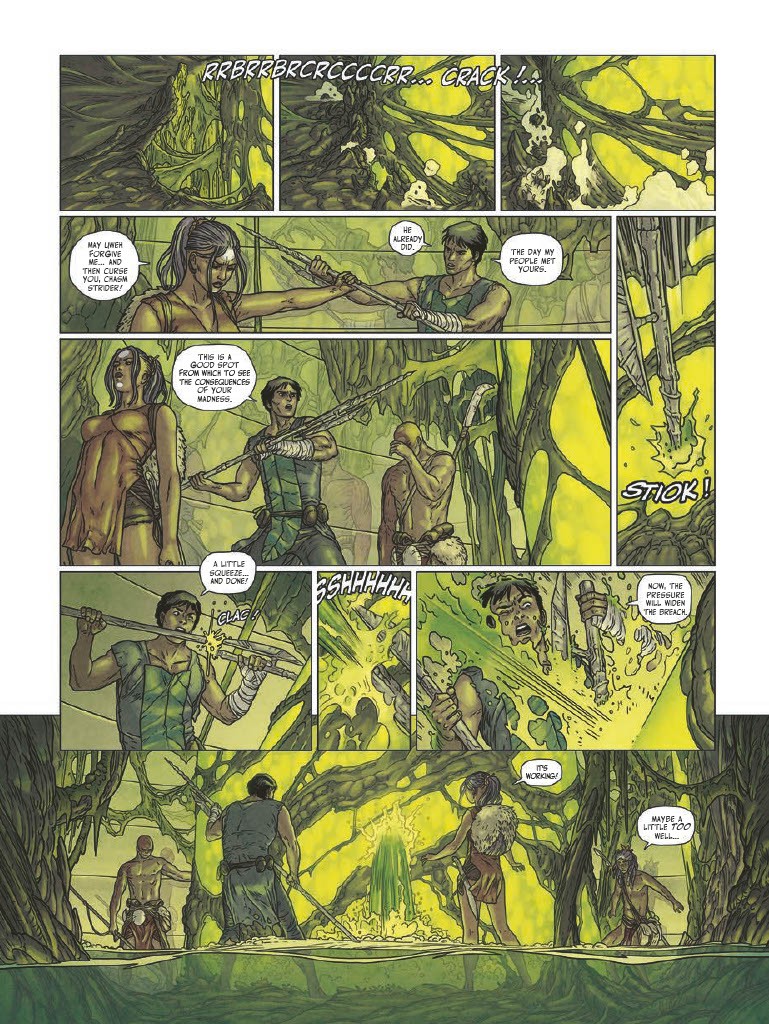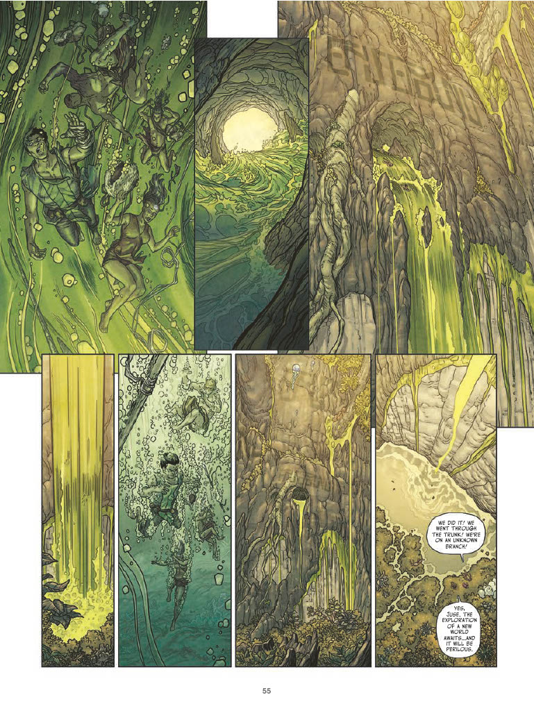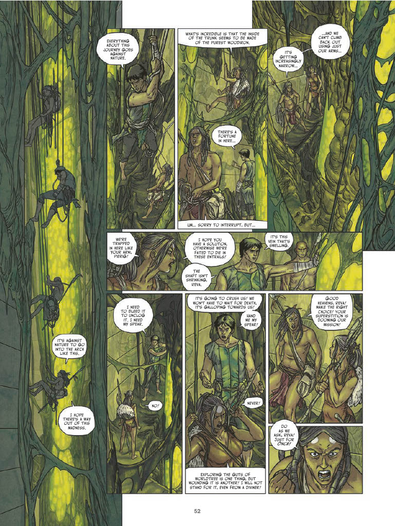 All is not right within the branches of the sacred World Tree. Towering huge, its life-giving sap sustains the many divided clans living within it… until the Chasm Strider clan’s diviner, Pierig, discovers the Tree’s sap has become infected! As the sickness eats away at the World Tree, a party works its way down the levels of the massive Tree, inching closer to its roots. But what secrets do the dense roots hide? How deep will this unlikely group descend to save everything they love?