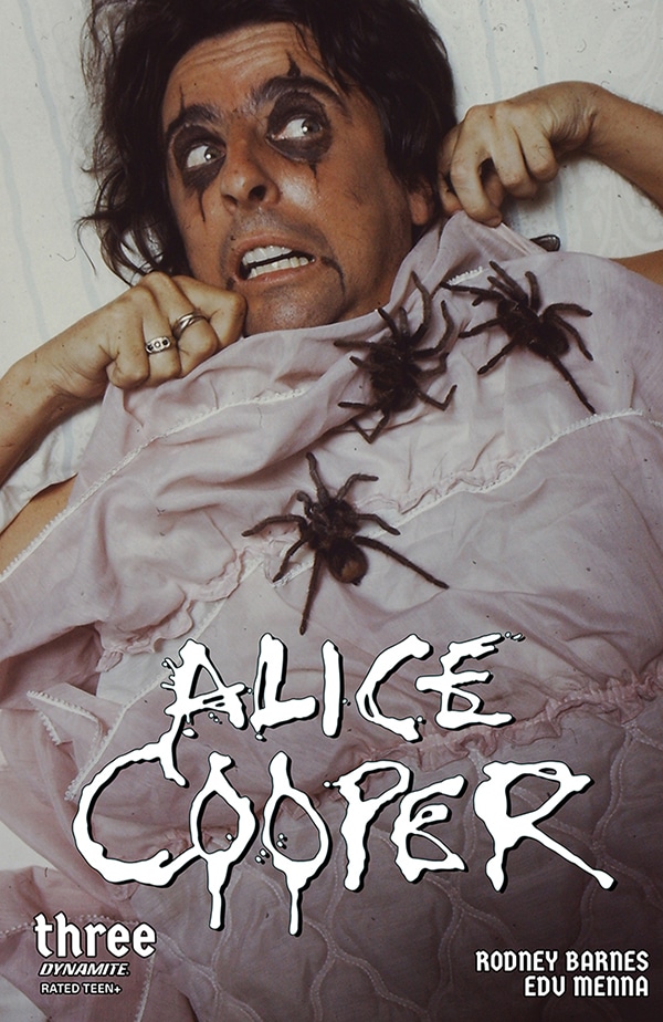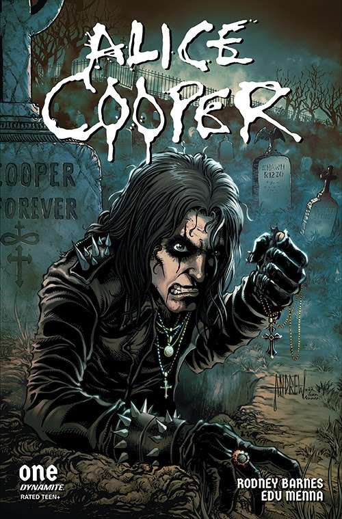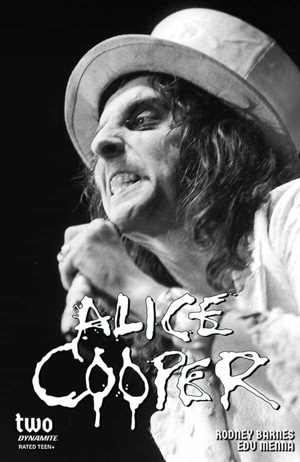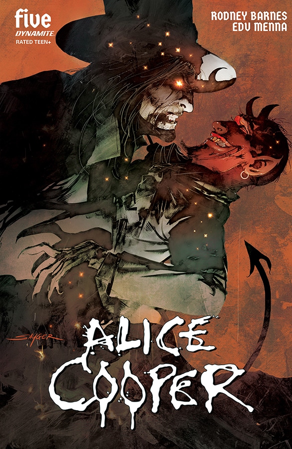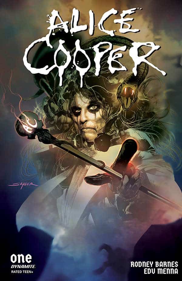 Writer RODNEY BARNES and artist EDU MENNA’s magnum opus is enhanced with cover art from STUART SAYGER, ANDREW MANGUM, and a timeless photo of mankind’s last hope — Alice Cooper!