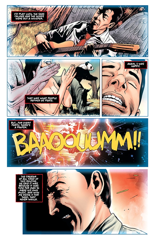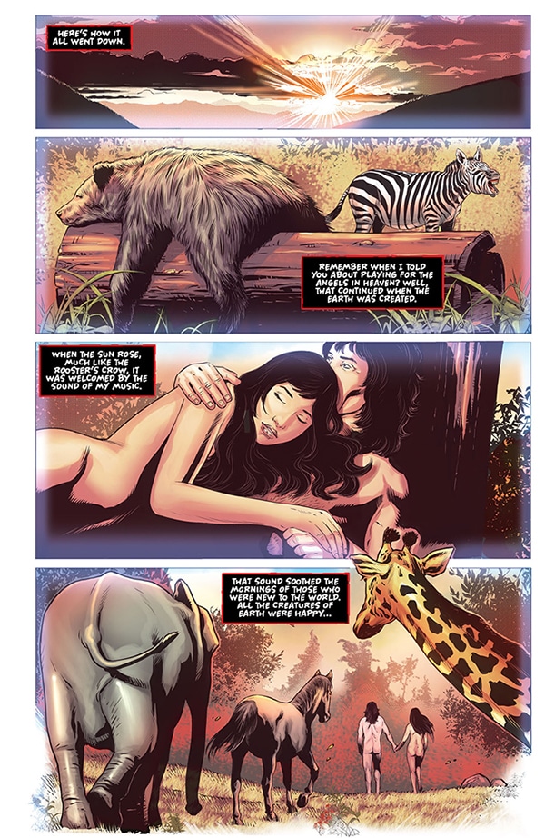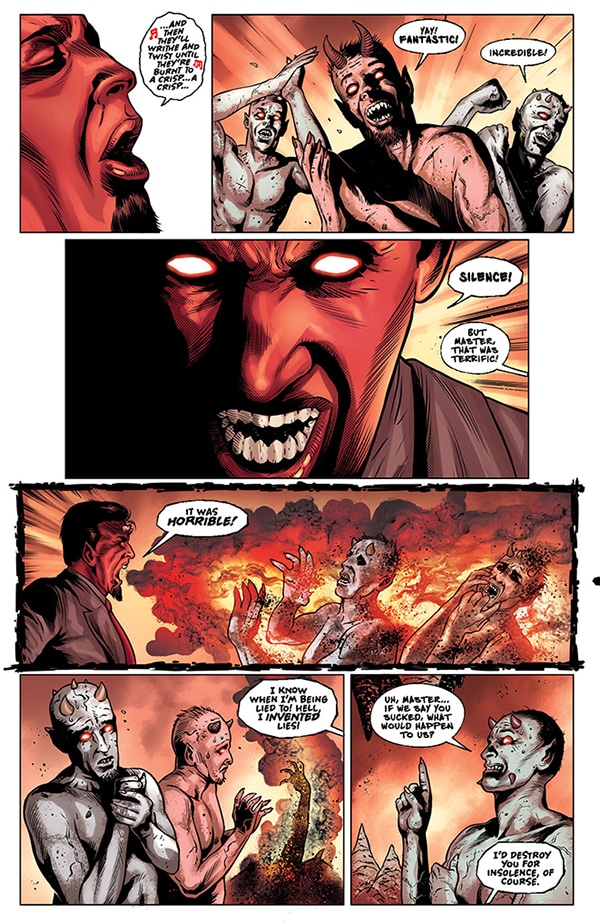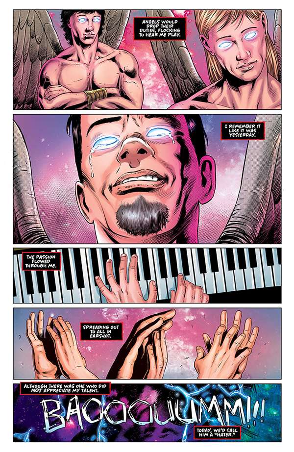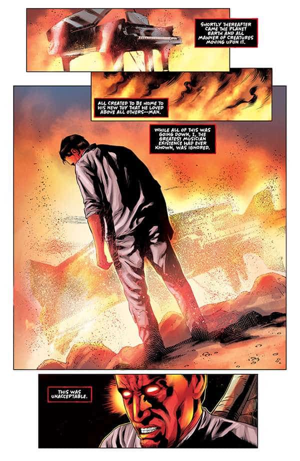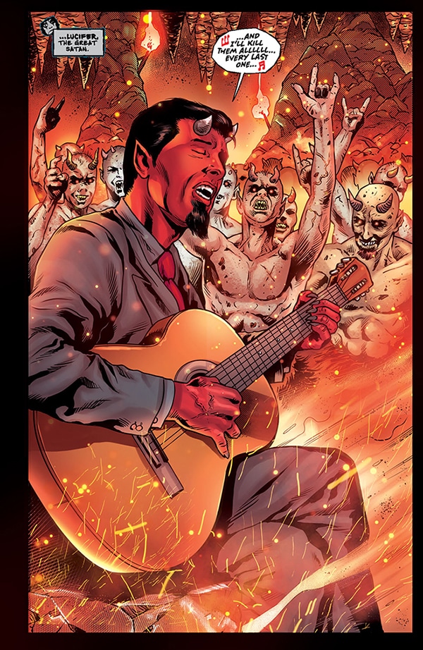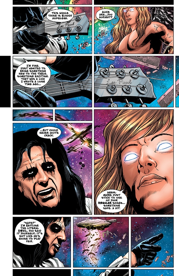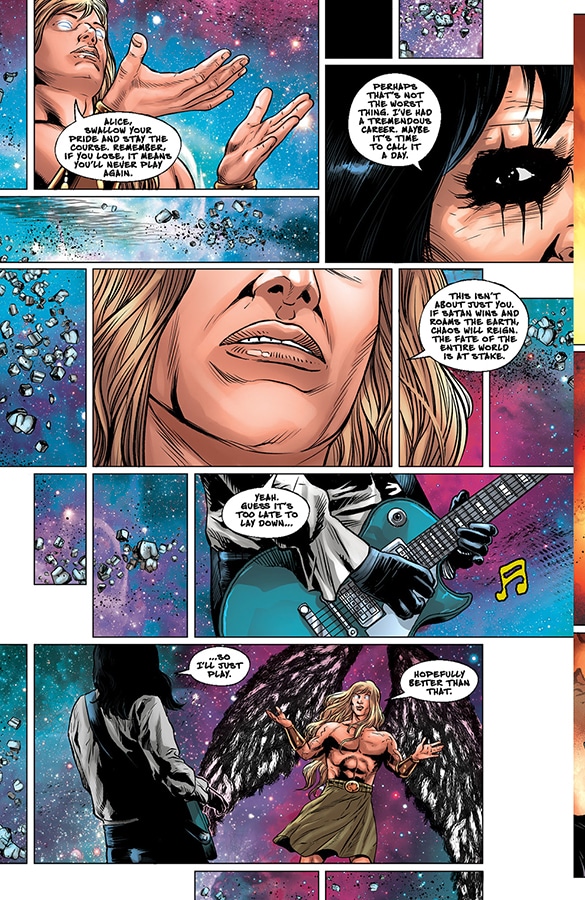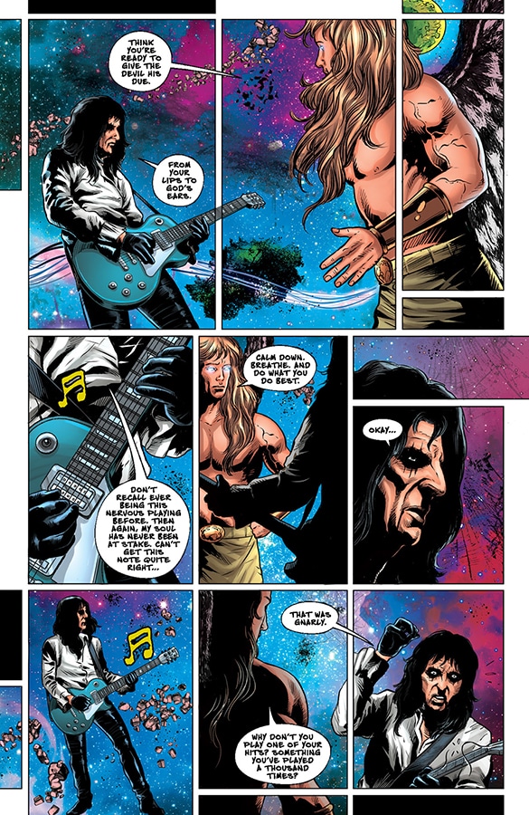 After two issues, it’s time to hear Satan’s side of the story, don’t you agree? Well, he certainly thinks so… but Alice Cooper is here to keep the devil in check — with the power of rock and roll! As the two titans square off in this ultimate rock battle, the very fate of humanity hangs in the air between those last, lingering licks!