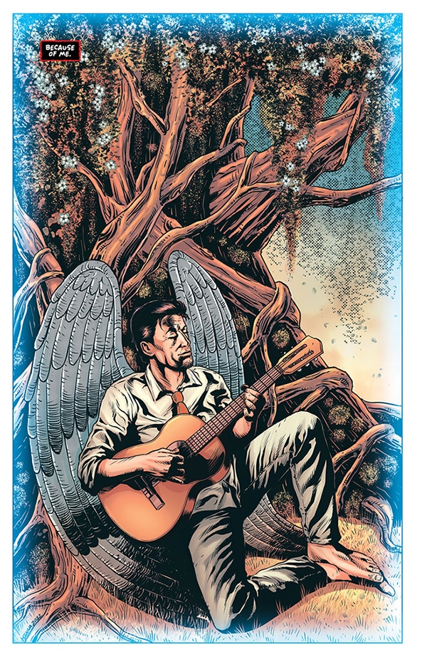 Among the start-studded crew of cover artists for this series is Barnes’ frequent collaborator from their hit comic series Killadelphia, Jason Shawn Alexander. Plus, the incredibly talented Stuart Sayger and Andrew Mangum join in, along with a photo cover of the bombastic lead singer and a blank cover so fans can get original sketches done. And all of these covers will be cardstock!