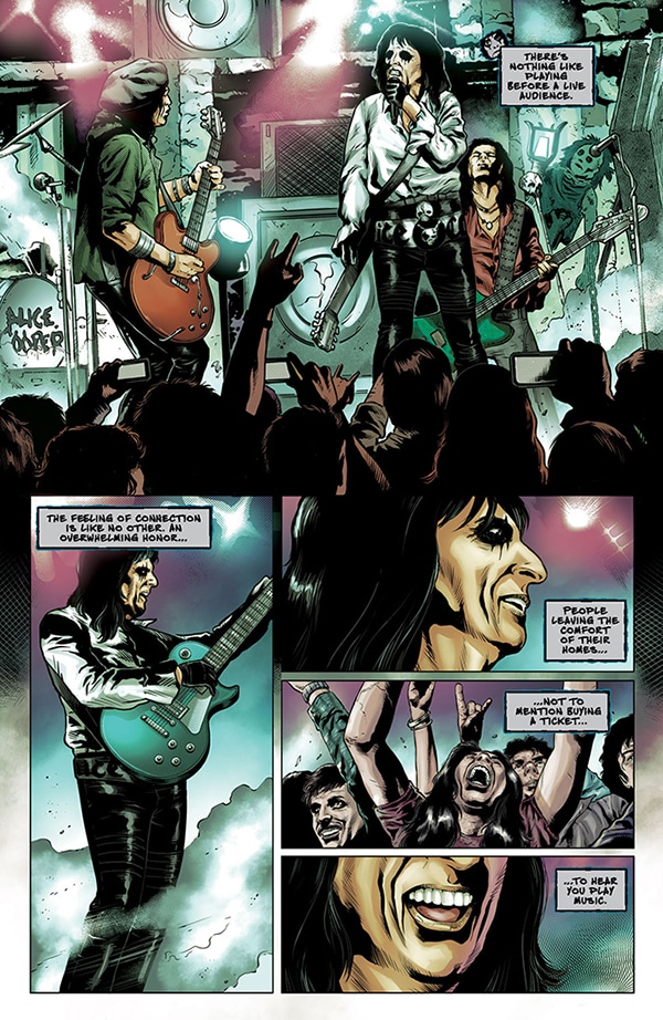 Alice Cooper is no stranger to comic book fans as the iconic rocker has been popping up in the four-colored pages since the seventies. But in this new tale of terror, legendary rock acts are being attacked by demonic forces and Alice starts to notice some of his own fans happen to be… undead.