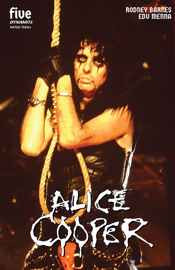 Writer RODNEY BARNES and artist EDU MENNA deliver their ultimate showstopper with Alice Cooper #5, accompanied by cover bands STUART SAYGER, ANDREW MANGUM, and the ultimate frontman himself — ALICE COOPER!