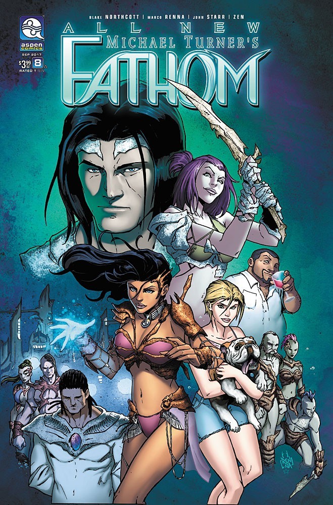 The first ever, all-new Aspen Comics YOU-niverse Bundle will include an exclusive Michael Turner’s Fathom #1 line-art variant cover by creator Michael Turner. The bundle also includes an exclusive Fathom T-Shirt, a metal travel bottle, a Fathom mini print by Michael Turner, with colors by Peter Steigerwald, a new Aspen sticker, a Fathom trading card, Aspen Bucks available for use in person at the Aspen Comics Booth #1501 or on www.AspenStore.com, and an Aspen Comics drawstring bag to complete the bundle.