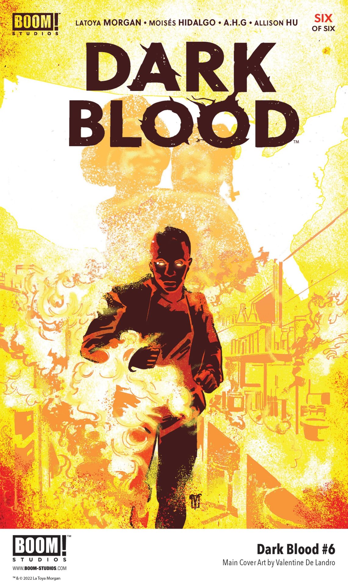 BOOM! Studios has revealed a first look at Dark Blood #6, the final issue of an evocative six-issue original series from screenwriter LaToya Morgan, rising star artist Moisés Hidalgo, colorists A.H.G. and Allison Hu, and letterer AndWorld Design, about a young man forging a brave new future for himself and his family while dealing with his past, available on January 26, 2022.