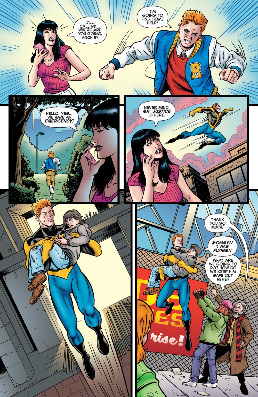 Longtime Archie fans may recognize Mr. Justice as a familiar figure from the “Mighty Crusaders” superhero line, dating back to the Golden Age of comics when the publisher was still known as MLJ Comics. This is a nod to Archie’s long history; in an interesting bit of meta play, these MLJ-era comics exist within the fictional universe of Archie is Mr. Justice and inspire Archie and Jughead to act when discovering Archie’s powers.