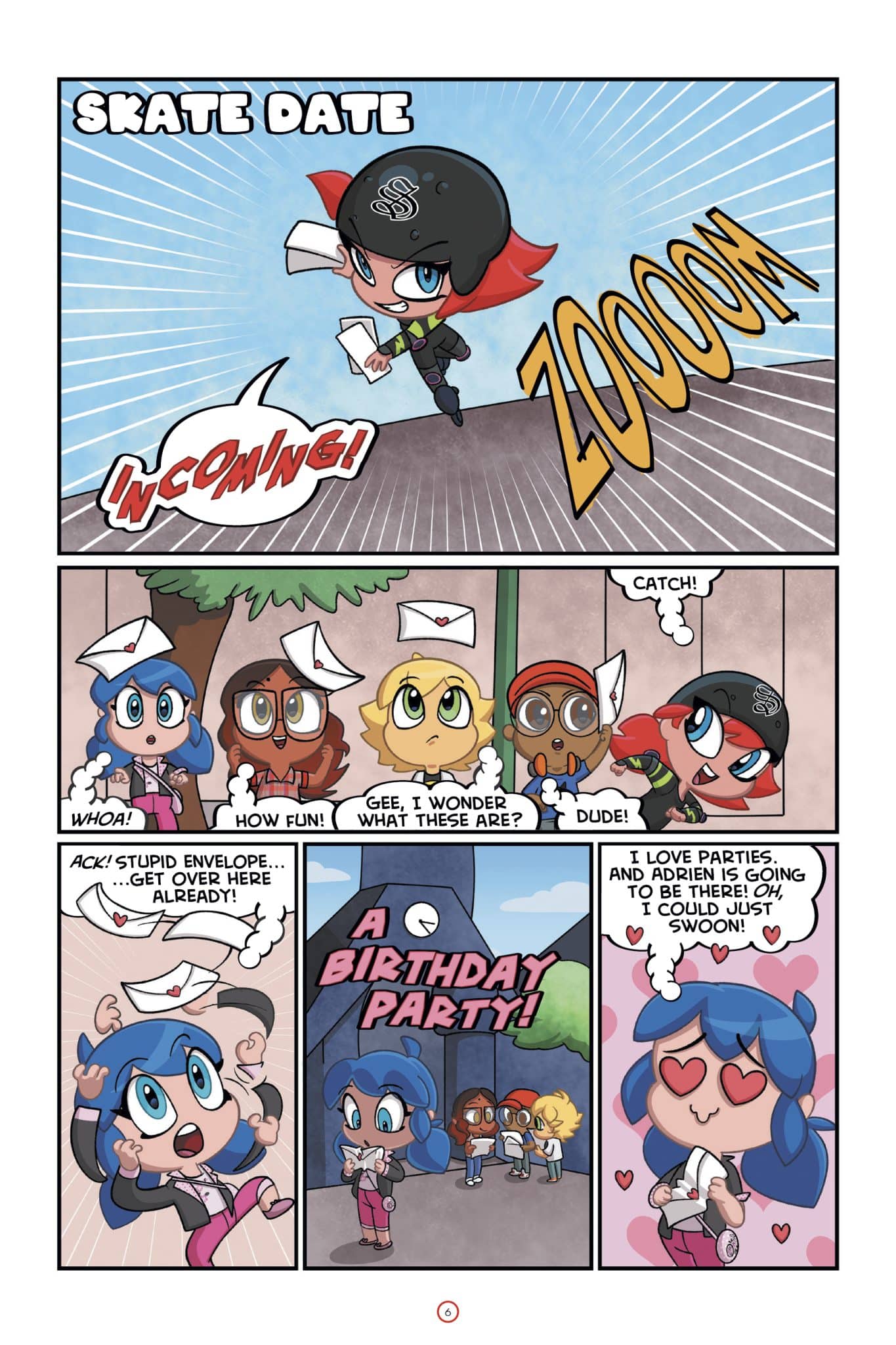 Super-klutz Marinette sure could use a lucky charm! Her best pal, Alya Cesaire, wants everyone to roller skate. But Adrien Agreste, their classmate, part-time model and Marinette’s full-time crush, is going to be there! This ordinary girl just knows she’s going to crash – right in front of him!