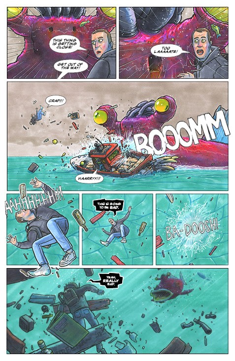 Mitchmixes comedy, science fiction and urban fantasy, with character Mitch as the anthropomorphic lead, juxtaposed to the seemingly realistic world of the late 90s. It’s chunky Roger Rabbit with a bad temper meets IndianaJones, set in a Sam Raimi’s looking cityscape. This mini-series combines several elements from native American mythology, as well as “star people” (or kachinas) folklore, retold in an ancient astronaut frame, with the legend of Shangri La, a mythical lost city, as the centerpiece of the story.