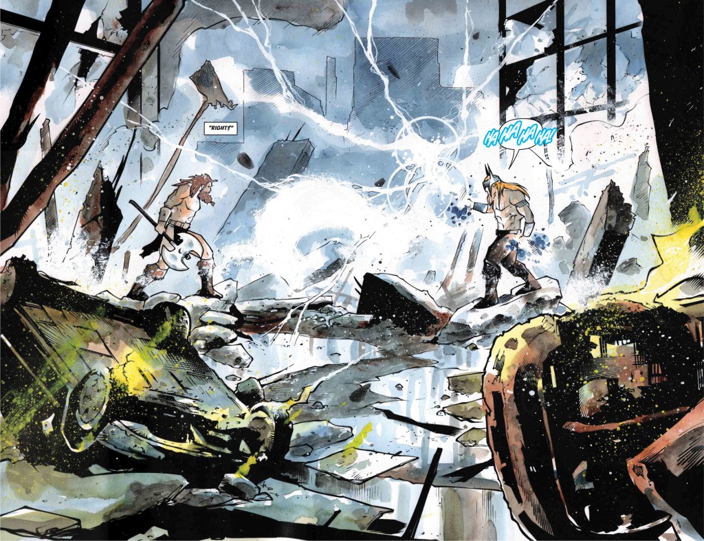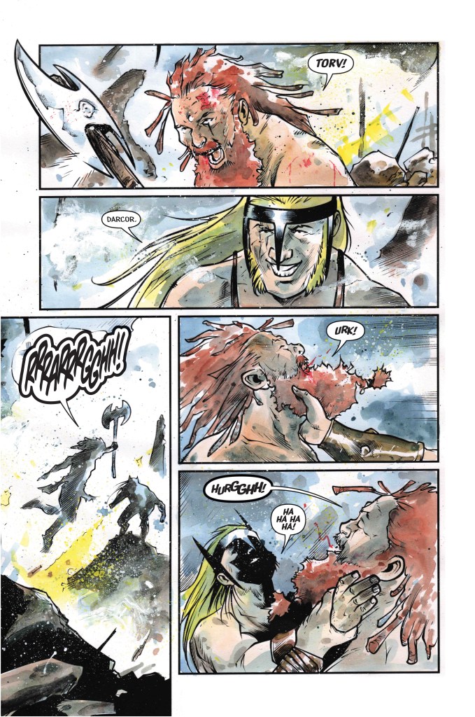 Taylor Esposito deserves and extra mention for the language spoken by the Barbarian. While it’s translated, you almost want to take the time to decipher it yourself, something that’s a challenge by others in the comic.
