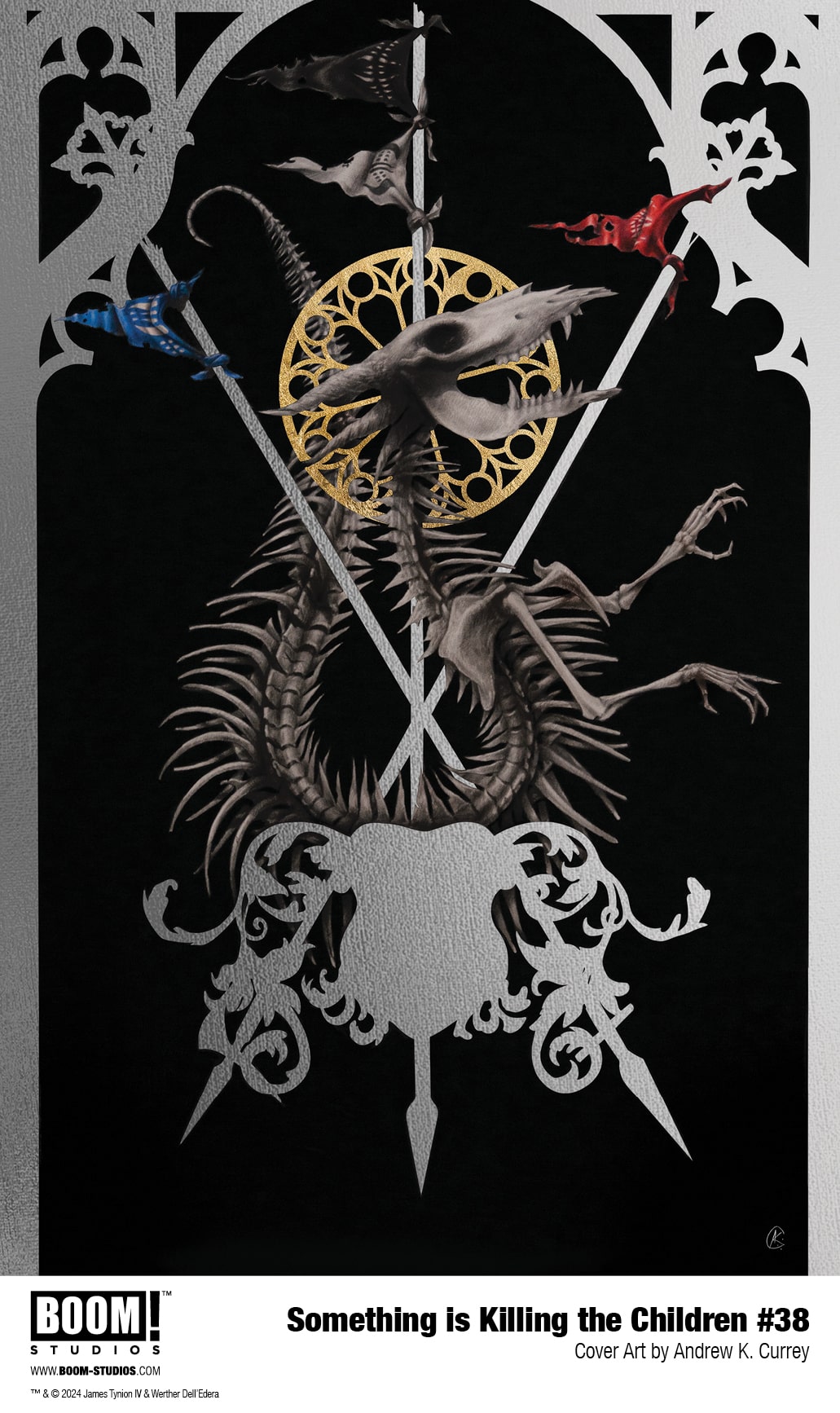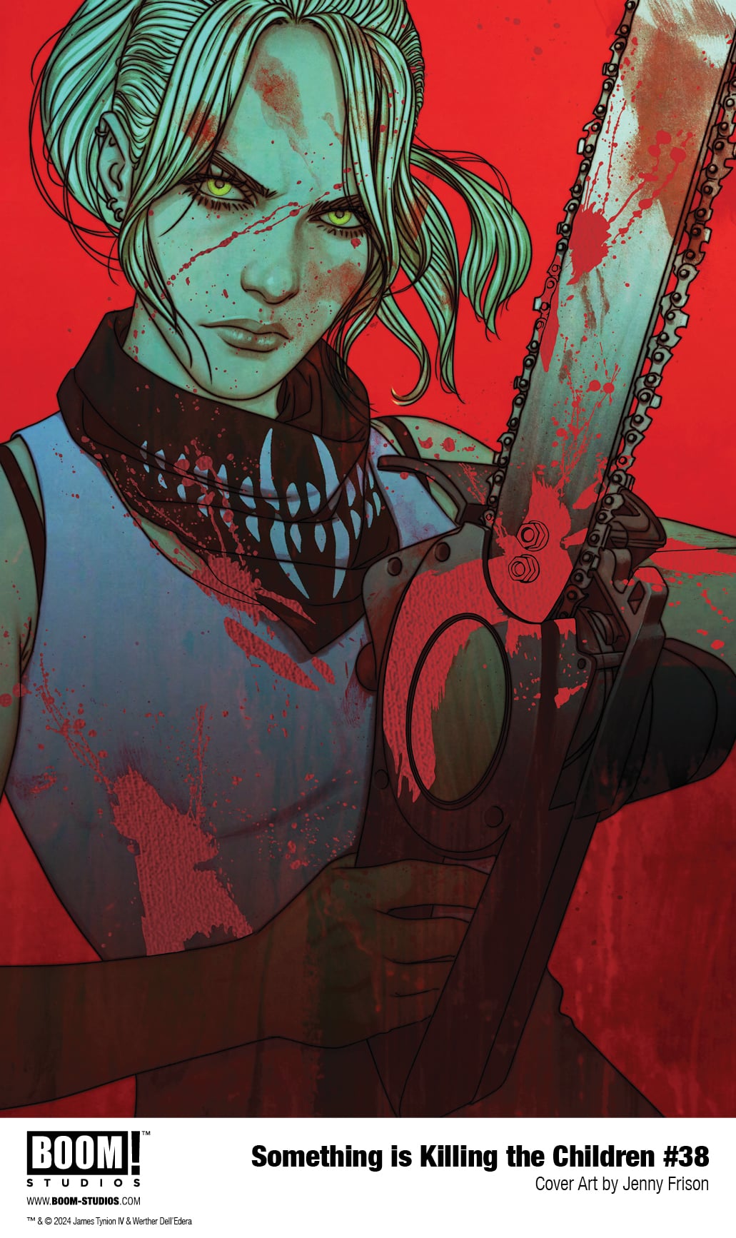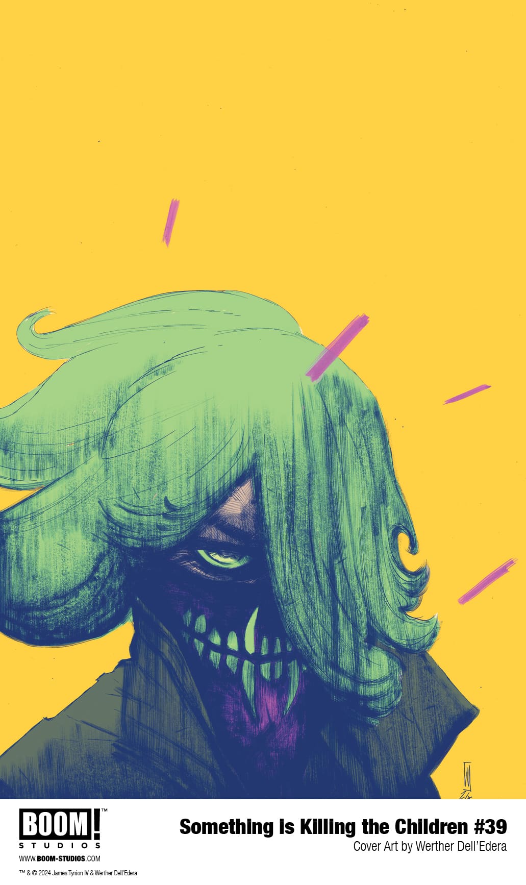 On Preview Night, BOOM! Studios will be selling Something is Killing the Children #38 Glow-In-The-Dark Black Mask variant for $30. On Thursday the publisher will have Something is Killing the Children #38 with a cover illustrated by Andrew K. Currey for $30, along with an exclusive John Giang variant cover for House of Slaughter #25, also for $30.