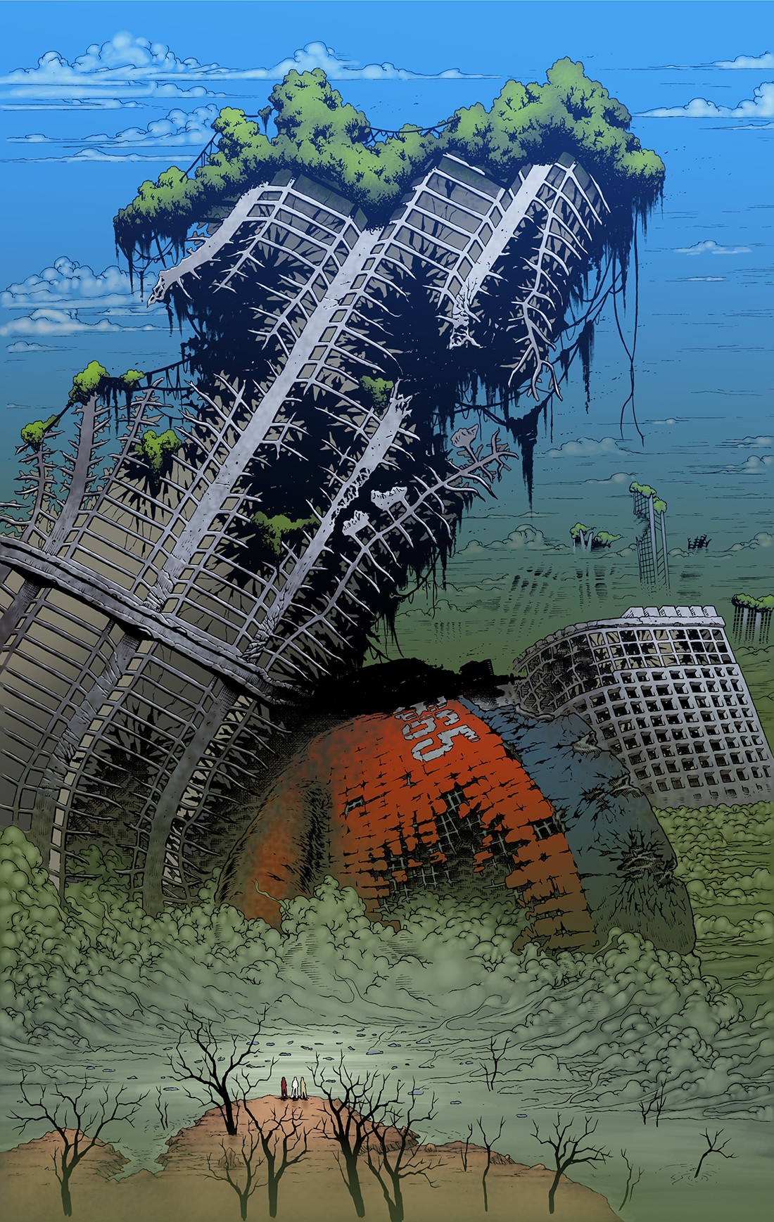 ES: For much of my early comic career, I’ve been living in one dystopian post-apocalyptic landscape or another (Old Man Hawkeye, Kiss Zombies), and that’s par for the course with pop culture. Heck, it’s hard not to be pessimistic when you read that Siberia has hit 100 degrees and we’re going backwards with climate change policy. But we shouldn’t forget that there is a younger generation of Gretas stepping up and fighting the good fight. I think we owe it to them to rewire our brains and get off our butts. For this story, I think we looked to where we wanted to go and wrote a path to get there.