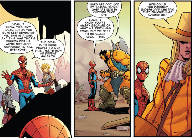 Spider-Man and the League of Realms had a cool concept of Spider-Man leading representatives from the other nine realms into battle, but it constantly changed settings, switched bad guy/threat on the fly, and like NewAgents of Atlas, didn’t make me care enough about its ensemble cast. The worst tie-in of all was War of the Realms: Uncanny X-Menwhich had a decent premise of the X-Men defending New York, but shoehorned in awkward connections to Norse mythology, killed off Sunspot for no reason and had no focus even though Sabretooth would have made a great villain. Thankfully, it will probably be all retconned when Jonathan Hickman begins his X-Men run.