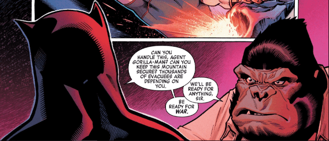 Avengers #18-#20 end up pulling double duty by introducing the Squadron Supreme of America as well as fleshing out the aforementioned Gorilla-Man and She-Hulk and setting up future plans for Aaron’s works in the Marvel Universe. The Squadron is a great satire of nationalism with a bit of trolling towards the DC Universe, and Aaron wisely puts them in an ancillary book to not detract from “War of the Realms”. The same goes with Gorilla-Man, who is in cahoots with the imprisoned Dracula meaning that the King of the Damned still has a role to play in this book’s events. And none of this is mentioned in the core War of the Realms mini, who only spends a solitary panel setting up Marvel’s next event “Absolute Carnage” as Venom slithers away from Malekith’s Necrosword. It’s nice to enjoy the ride/event you’re on before thinking about the next one.