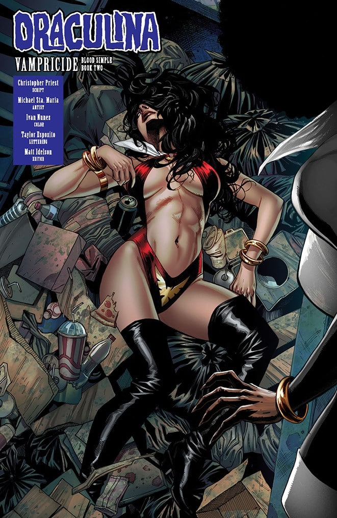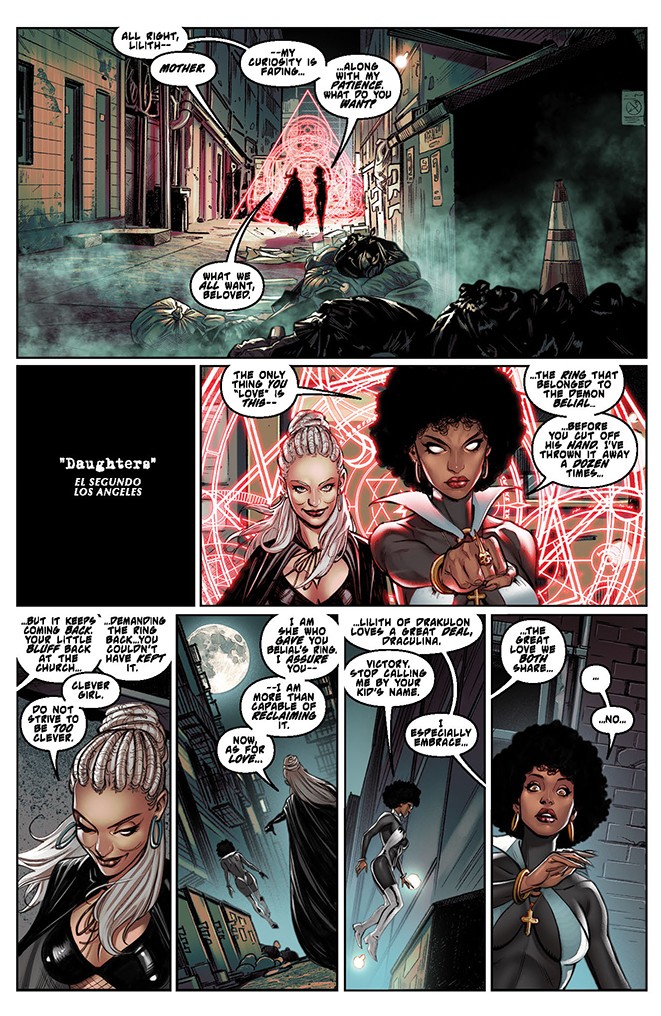 First introduced in the mythos-shattering Vampirella #0 on Free Comic Book Day 2019, fans were introduced to Victoria Harris by Christopher Priest and Ergün Gündüz. The gorgeous African American woman came into Vampirella’s life and alongside other newcomers, set her on quite the roller coaster ride. The two were briefly lovers, and Victoria found herself enamored by Vampi’s remarkable abilities – and even her iconic costume. Along the way she’s since been bestowed with a cursed, demonic ring and turned against her friend by Lilith, the mother of Drakulon.
