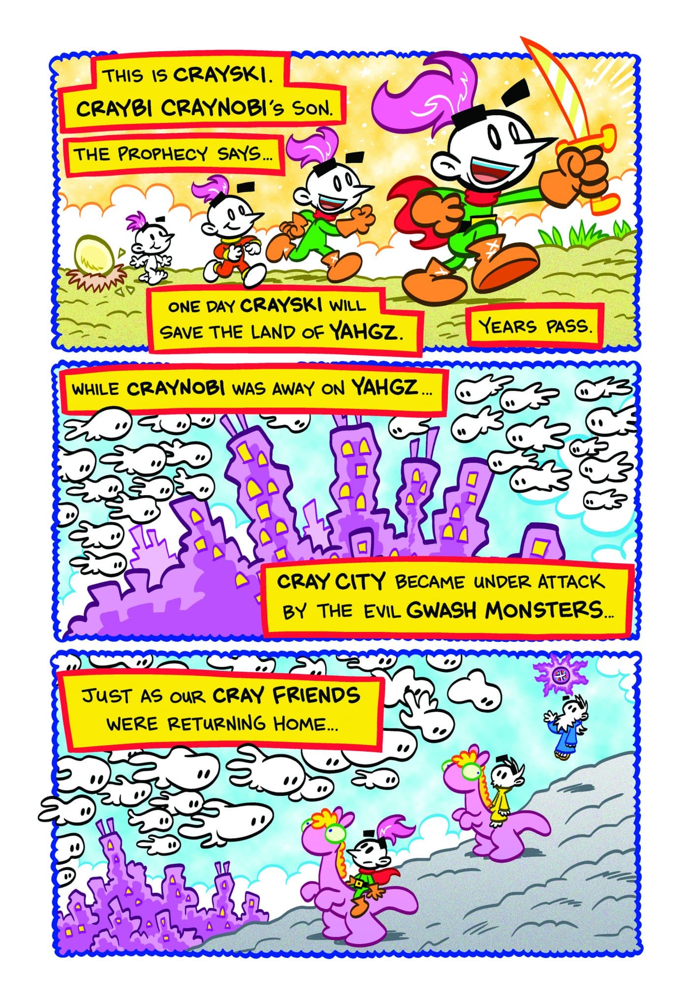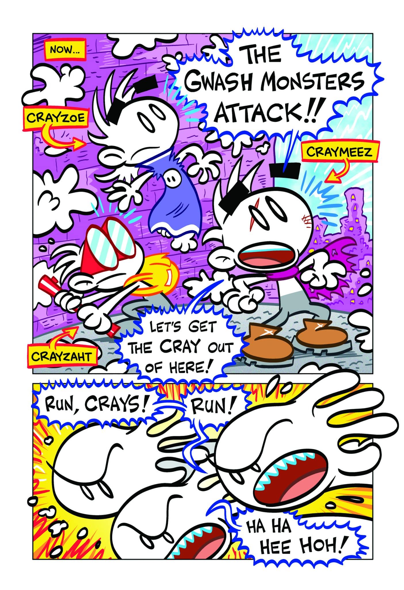 WATCH OUT! The evil GWASH MONSTERS are invading Cray City! Their evil leader, The GWASHIE is set upon revenge! And CRAYBI CRAYNOBI may be the only one who can stop her! Continuing the story events from where YAHGZ The Craynobi Tales left off; we find our Cray heroes thrown into the GWASH WAR! This action-packed adventure of good versus evil tells us more about the Cray characters and reveals much more of the legendary Cray Lore and the mysteries that surround the Land of YAHGZ! What is The Cray Stick of Joy? How angry is the Angry Stick? What magical mysteries do they possess? One thing is for sure, if the sticks touch it will mean destruction and devastation for all! What challenges lie in front of the Crays? Why won’t Weezerd use the Mystic Orb? What does the Giant Green Gorilla play in all this? Will the Cray Cousins find the Cray Stick of JOY in time to save CRAY CITY? New characters! New secret origins! Questions answered in this epic tale of CRAY Proportions! Join us on this “30 years in the making” epic journey! By famous cartoonist ART BALTAZAR.