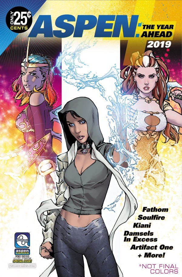 Michael Turner and Aspen Comics’ flagship title commemorates its landmark twenty years since its debut in grand fashion! The superstar creative team of Ron Marz (Green Lantern, Witchblade) and Siya Oum (Lola XOXO) are on board to deliver Fathom, and the iconic heroine, Aspen Matthews, to a new generation of readers as well as loyal fans alike!