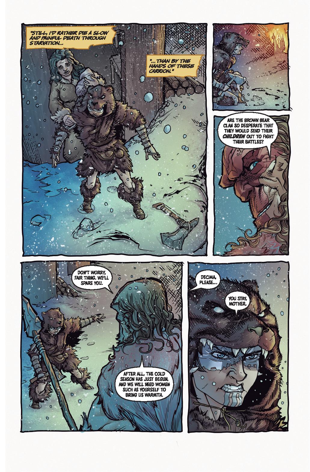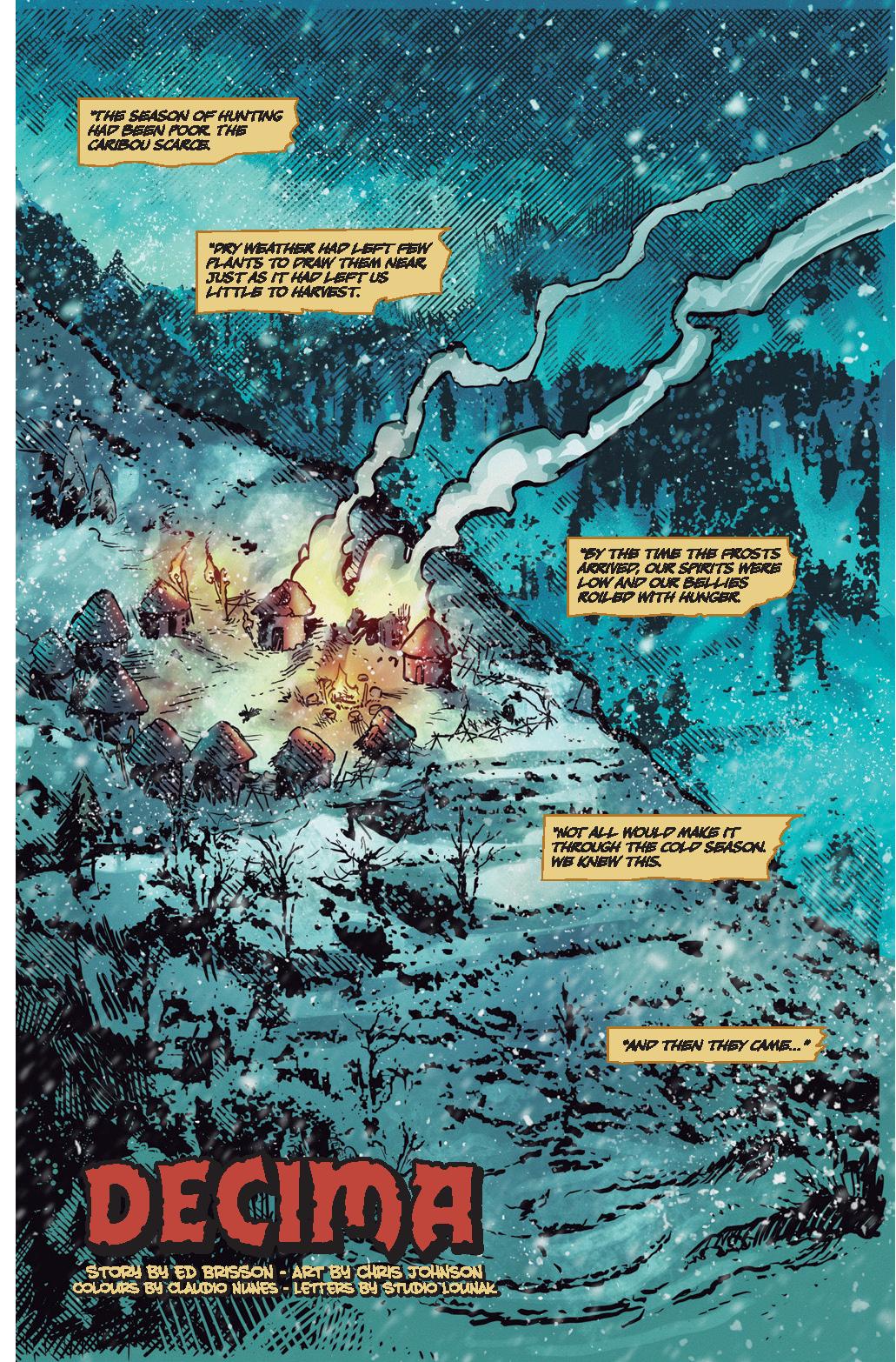 In our first tale DECIMA, one bloody night, before recorded time, a young warrior watches as her family and the rest of their village are brutally slaughtered. The only hope of saving her tribe is to pick up an axe, steel her nerves, and join the fray. DECIMA is a tale of loss, respect, and valour, stepping into the far reaches of human history, further than previously ventured in the Assassin’s Creed universe. By writer ED BRISSON and artist CHRIS JOHNSON.