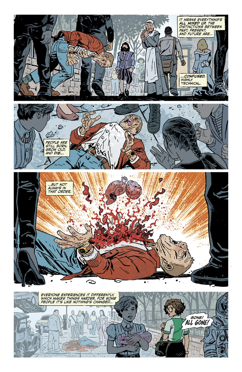 Time has no bounds in this world, and readers will follow in the footsteps of normal people who are just trying to get through a normal day, but instead have to deal with time loops and space portals, confused time travelers from different eras, and alternate dimensional versions of themselves…all while just taking a stroll down the street. Meanwhile, the overarching story dives into what caused the rules of time to suddenly shift, and if it’s possible to reverse the damage. Fans of Crisis on Infinite Earths, Black Mirror, and Doctor Who will enjoy this time-bending, clock-shattering new series.