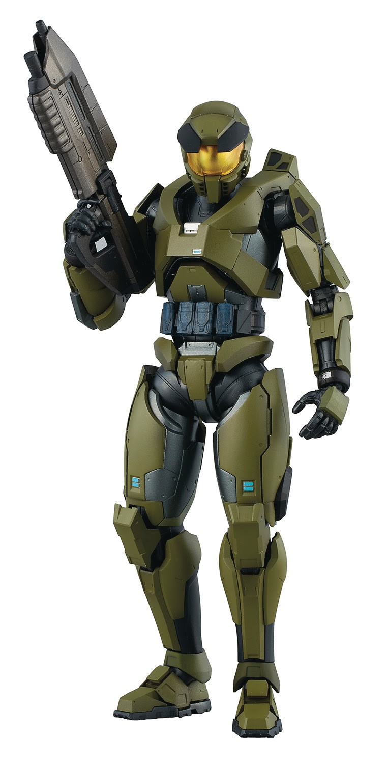 The PREVIEWS Exclusive Master Chief Mjolnir Mark V figure from 1000toys includes two M6D Pistols and an iconic MA5B Assault Rifle, along with a Covenant Energy Sword to cut through anything within reach! The exterior armor pieces are constructed in ABS plastic while the die cast inner frame provides an overall improved integrity and excellent articulation for the collectible while retaining battle-ready stiffness in the joints.