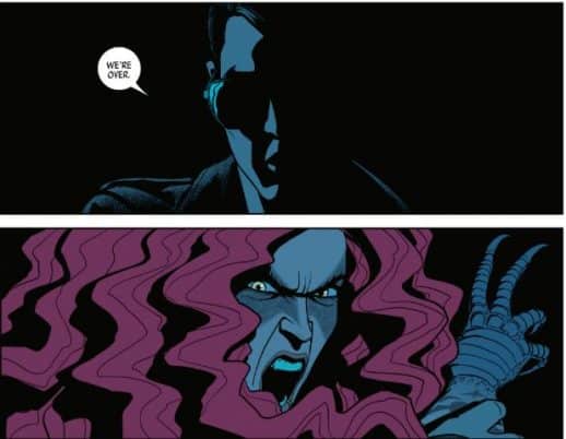 As The Wicked + the Divine #38 begins,the cast of characters that Kieron Gillen, Jamie McKelvie, and Matthew Wilson has dwindled down, and they’re mostly bad eggs. And the good ones are irreparably damaged either physically or in spirit. Like every issue of this arc, WicDiv #38 begins with a flashback to the 1940s and 1950s where British poet and classicist Robert Graves is inspired by Ananke to write his seminal work The White Goddess about how goddess worship leads to inspiration, poetry, and is the “mother of all invention”. It’s very in much in keeping with the spirit of WicDiv as Gillen and McKelvie uncover more of the inner workings of the Pantheon, Ananke, Minerva, and the world of their story. With its juxtaposition of storytelling mechanics and intense character psyche burrowing, WicDiv #38 is a pretty strong middle issue, and the the varied color schemes by Wilson are a nice treat.
