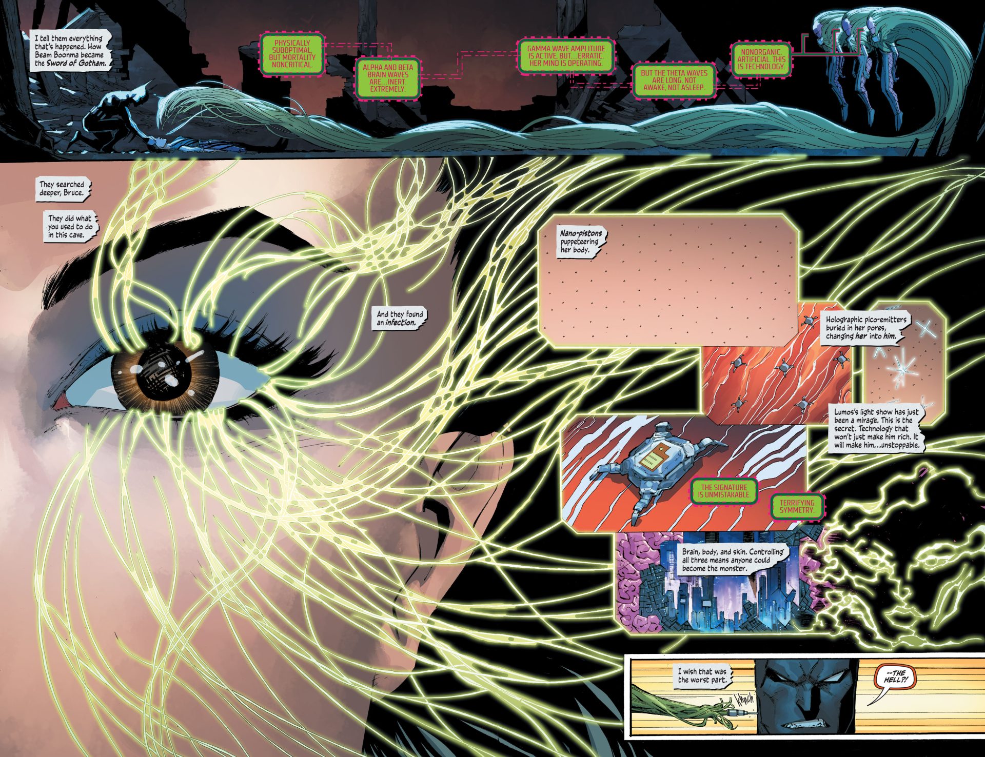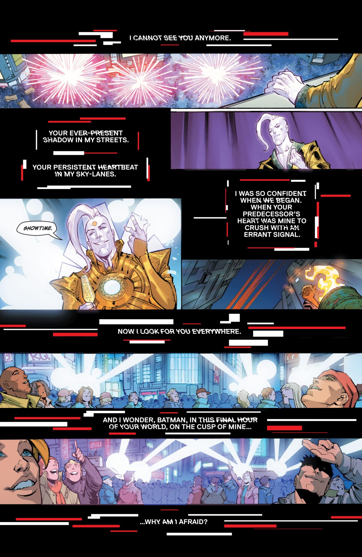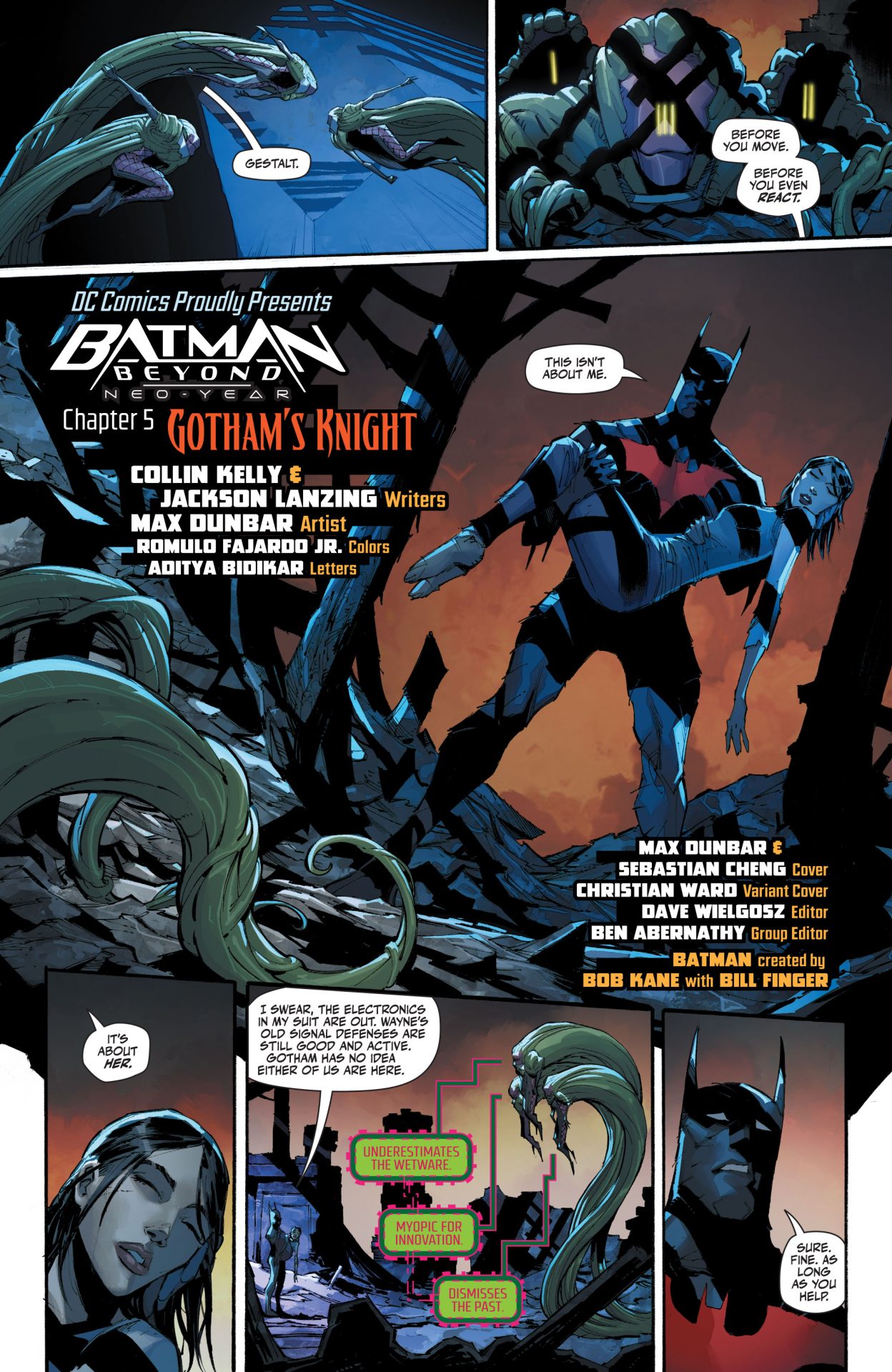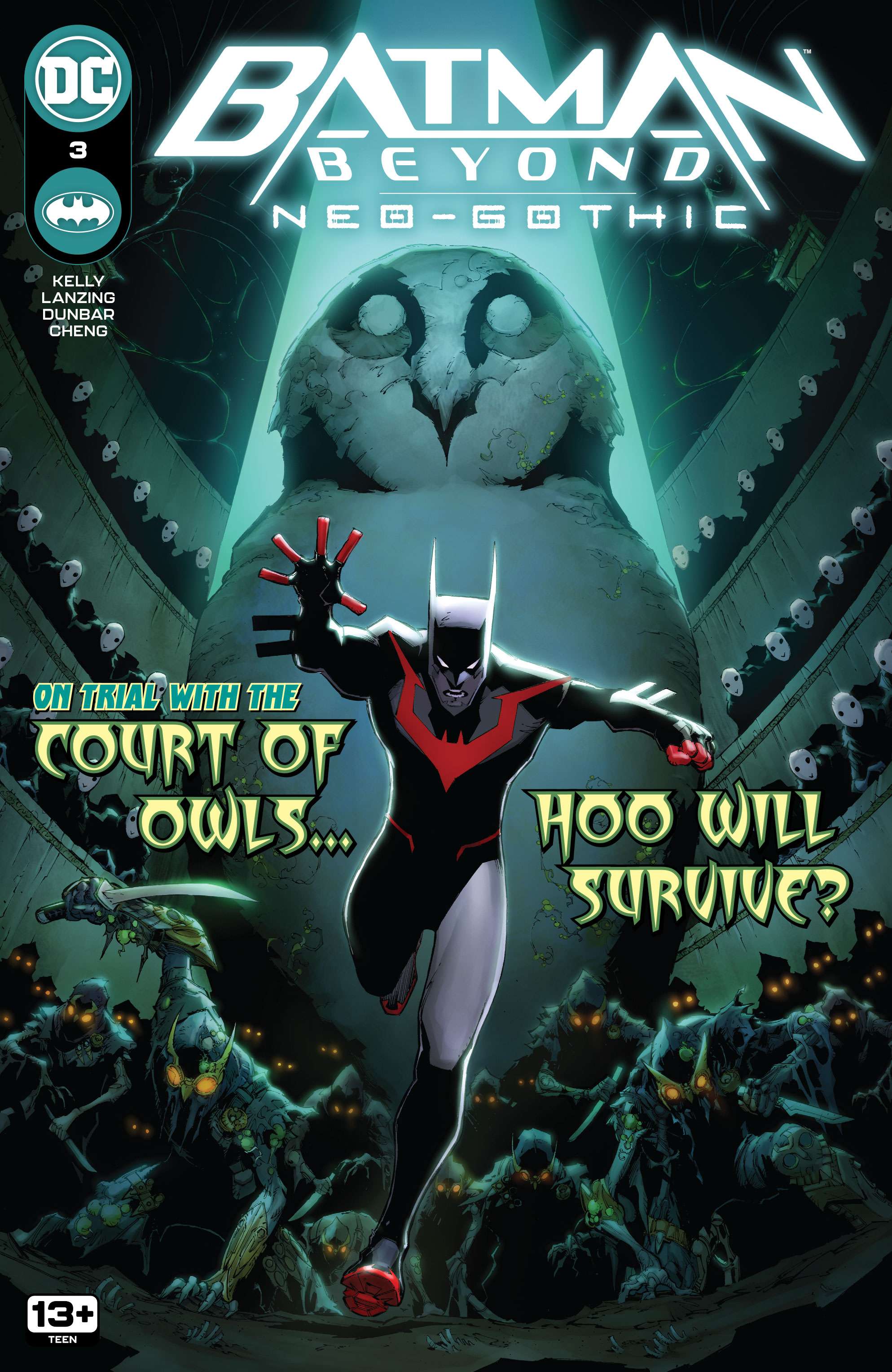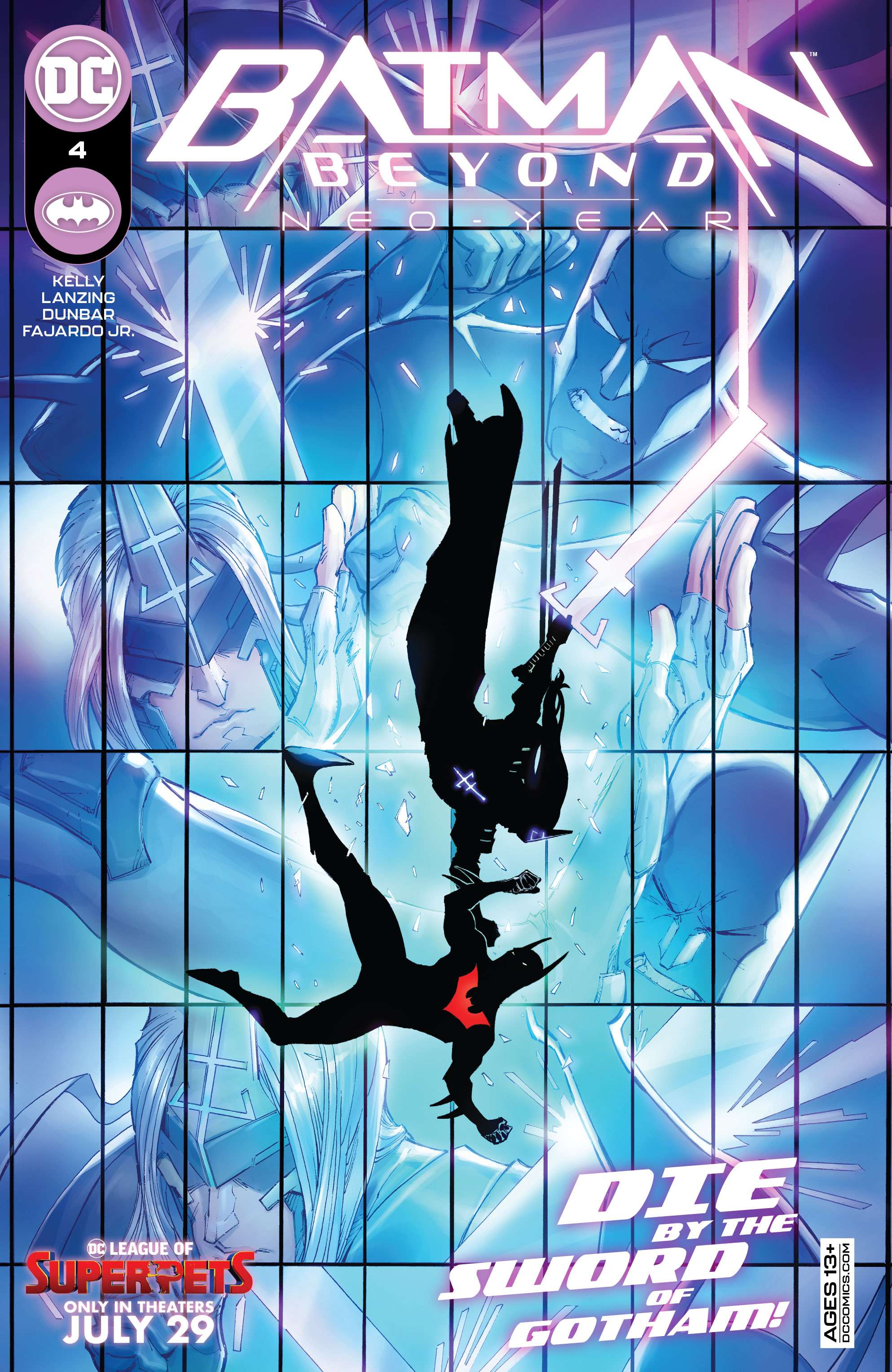 This highly detailed figure features a new hand-painted cowled head with two interchangeable lower faces. Batman wears complex armor in black and metallic gold with a weathered effect, plus a tailored, wire-hemmed cape which allows for dynamic poses. His arsenal of gadgets includes a Batman Beyond-style Batarang, a grapnel gun with Batclaw, a disruptor, an REC gun, and a freeze grenade.