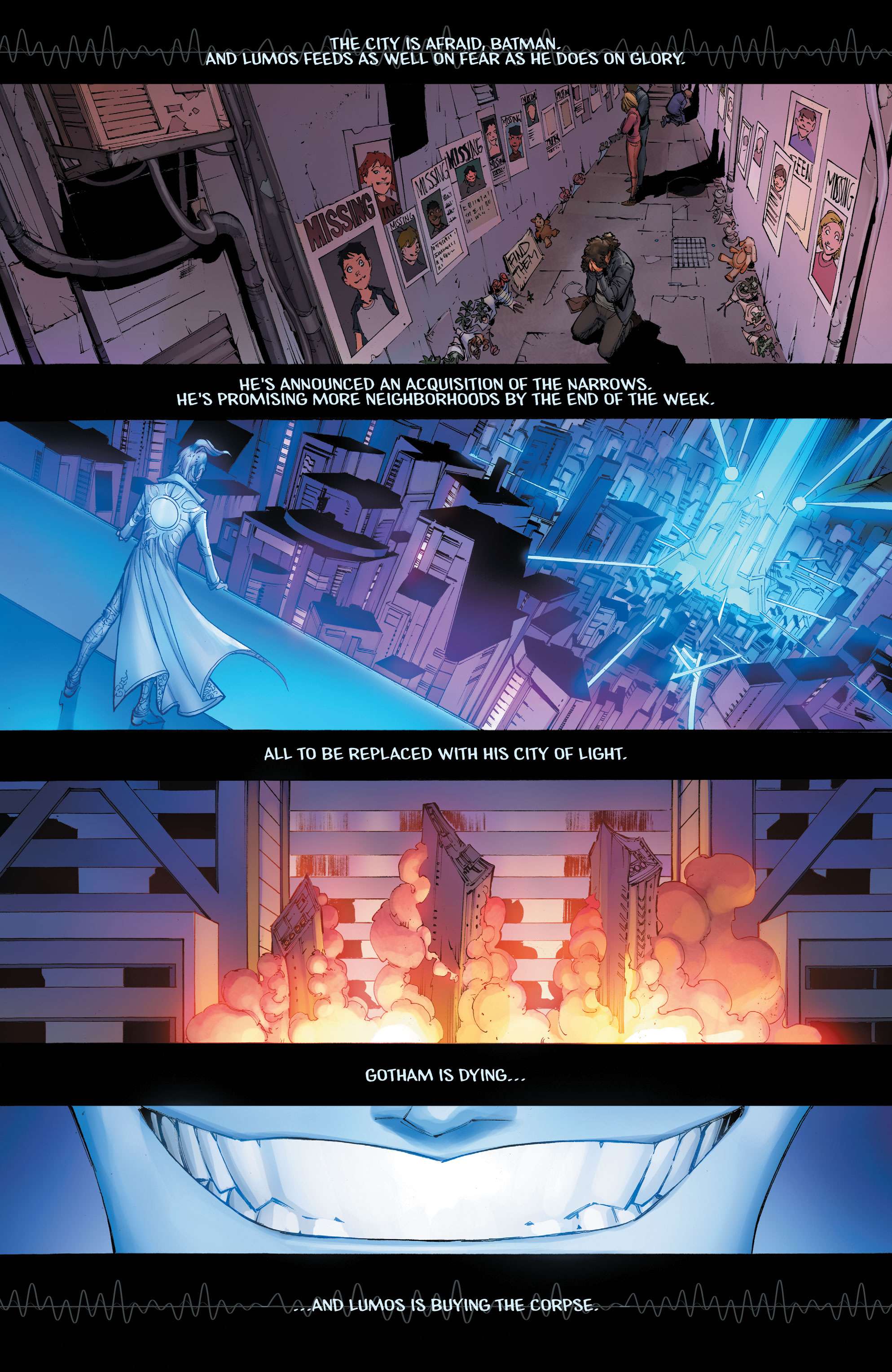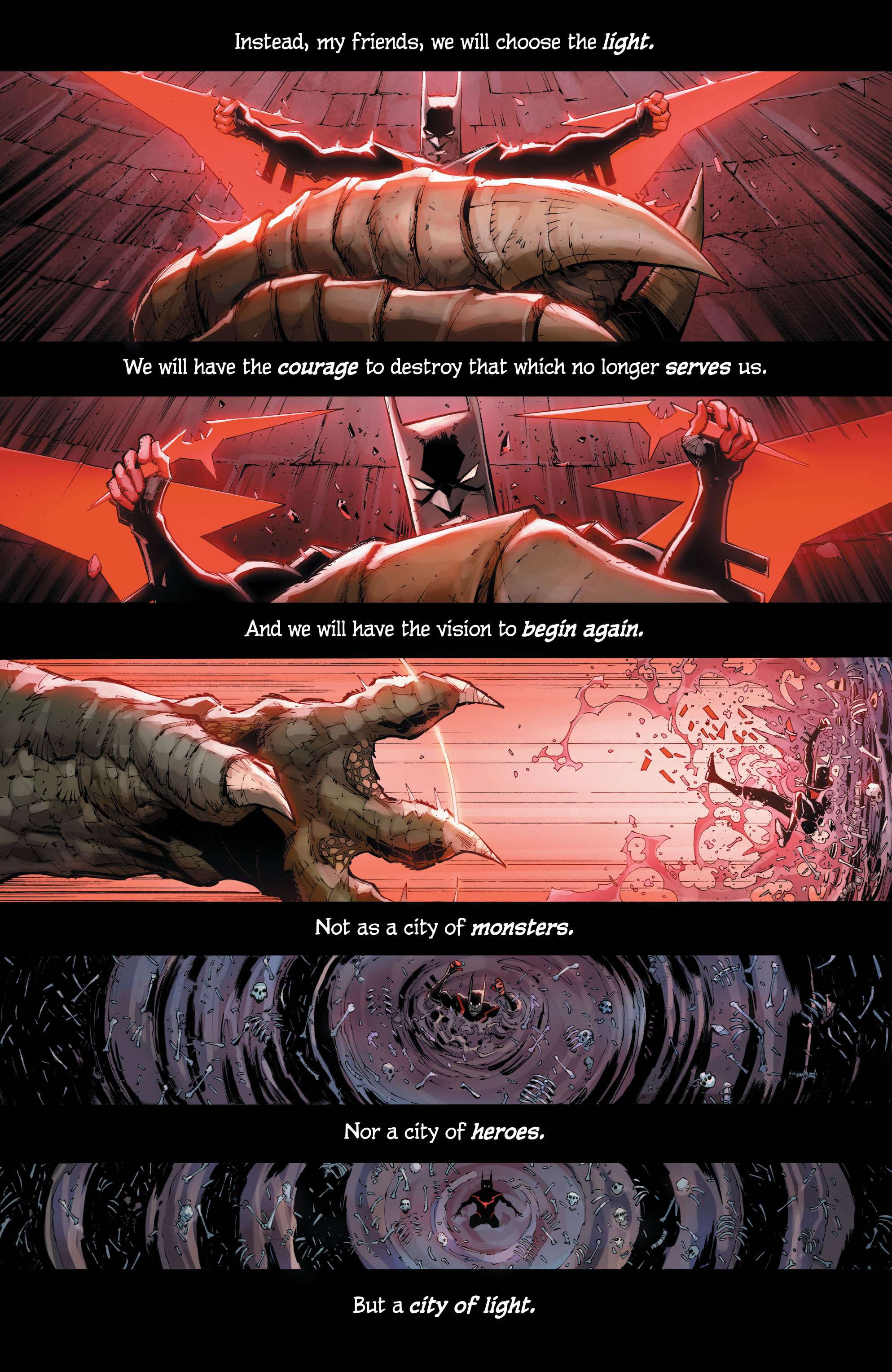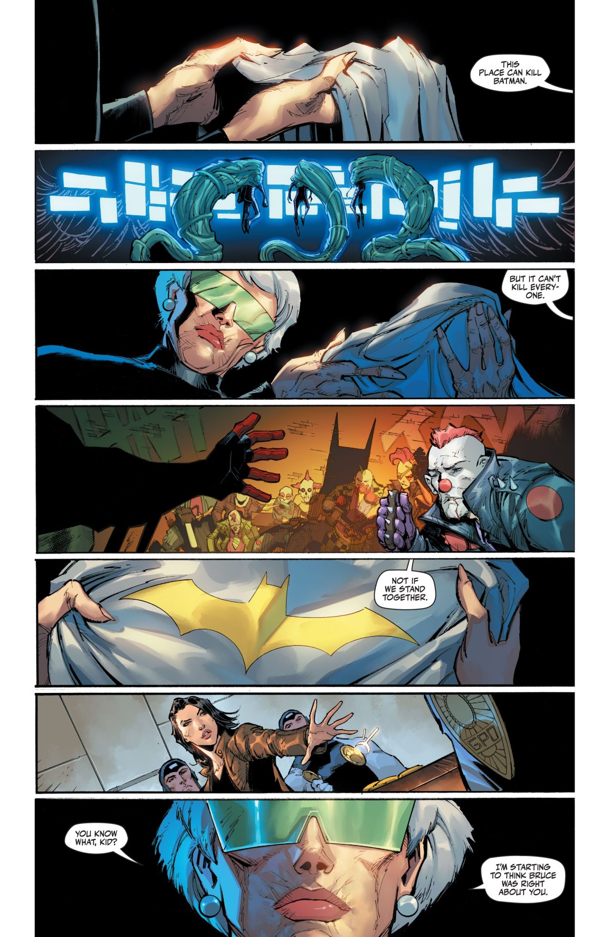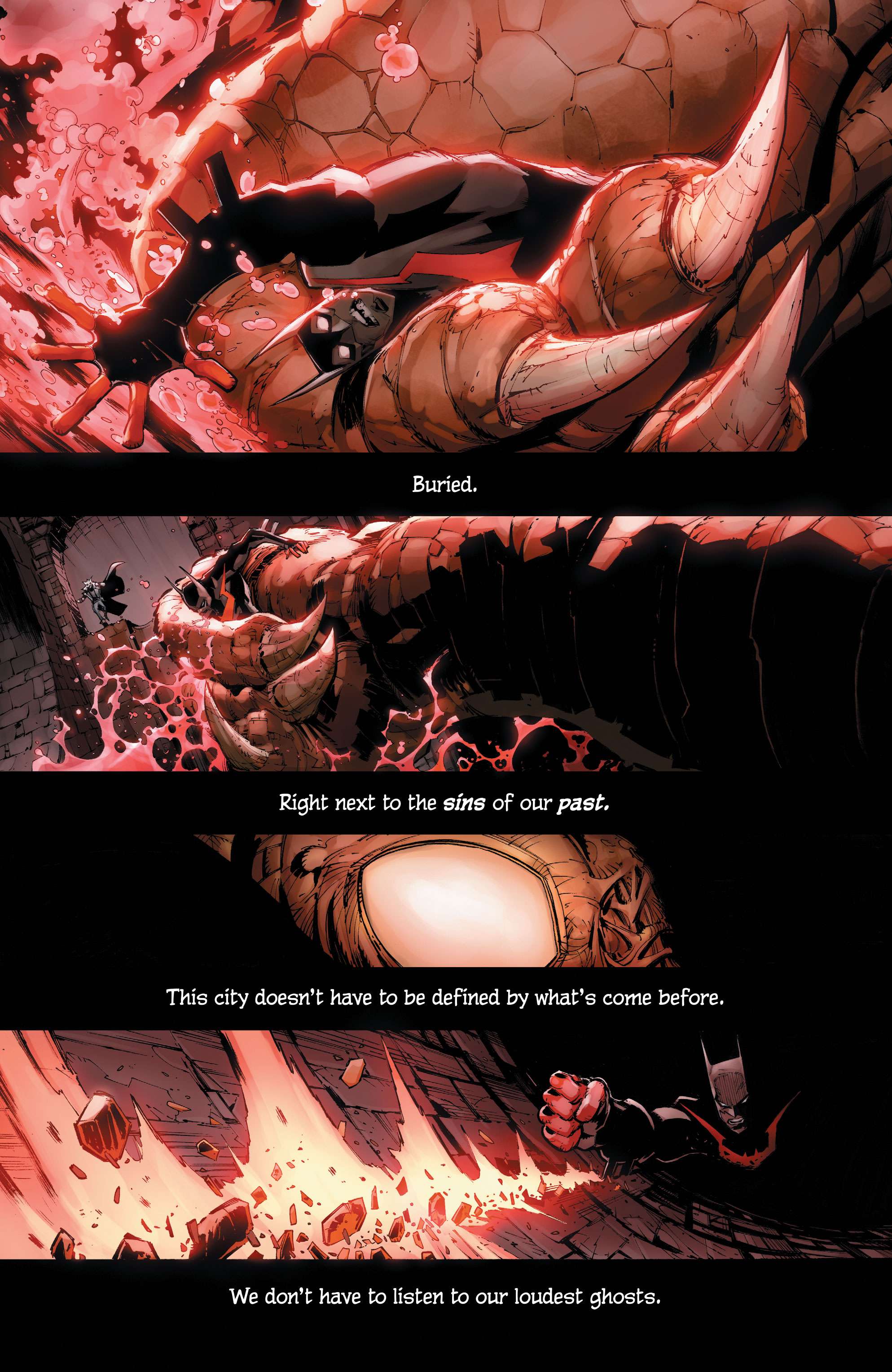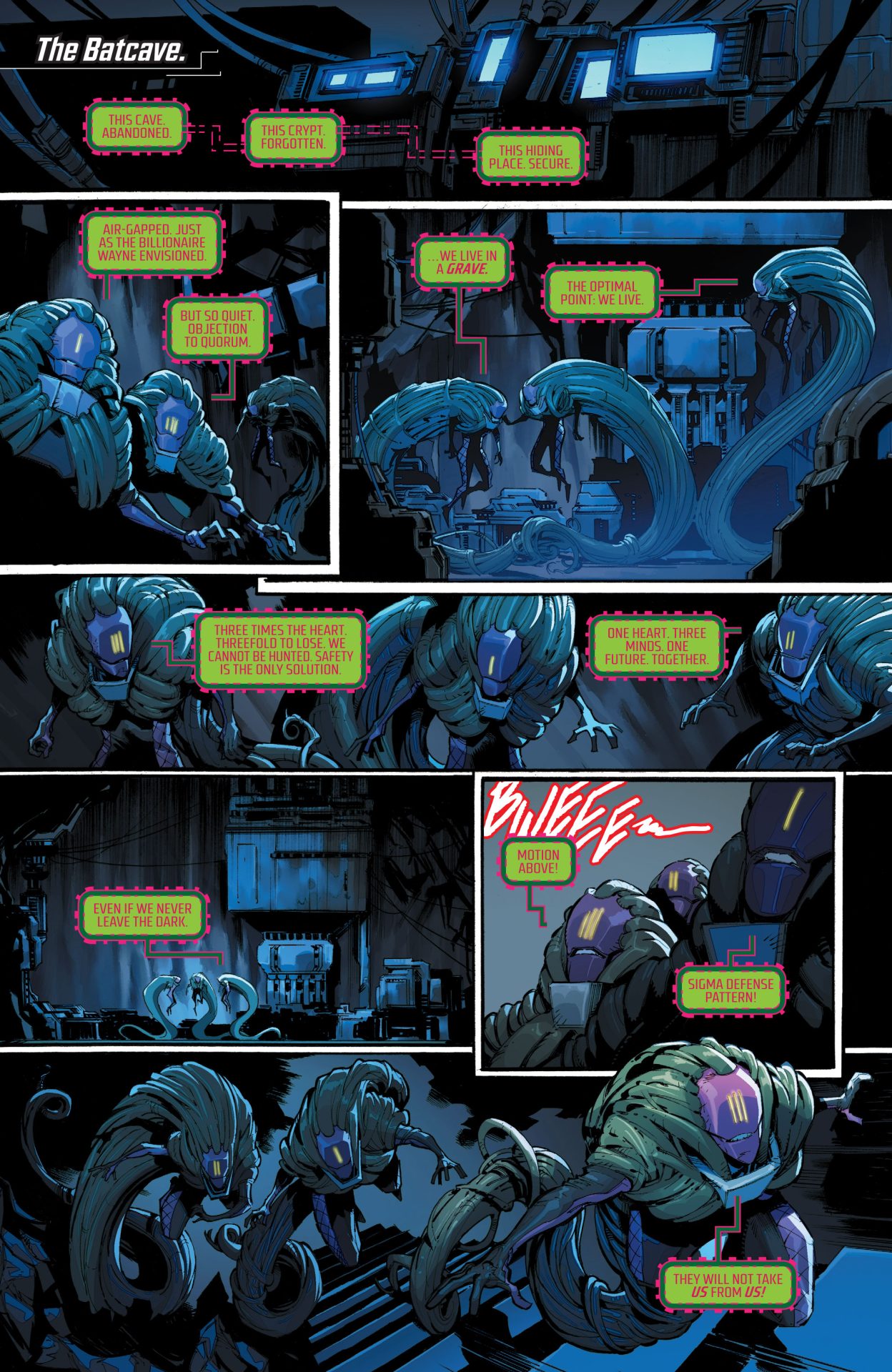 This highly detailed figure features a new hand-painted cowled head with two interchangeable lower faces. Batman wears complex armor in black and metallic gold with a weathered effect, plus a tailored, wire-hemmed cape which allows for dynamic poses. His arsenal of gadgets includes a Batman Beyond-style Batarang, a grapnel gun with Batclaw, a disruptor, an REC gun, and a freeze grenade.