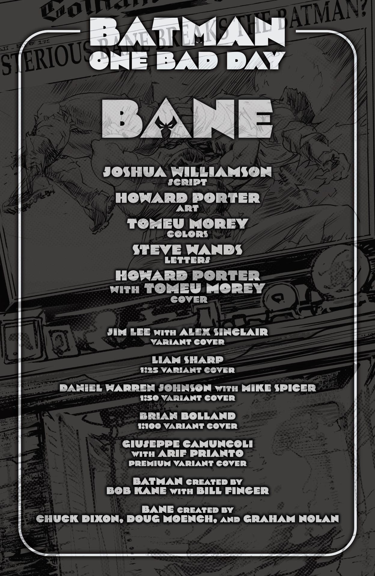 Batman: One Bad Day – Bane #1 (DC Comics) – I generally like the concepts of the “One Bad Day” stories which focus on Batman’s rogues adding a bit of depth to their characters or setting them up for a new direction. This one has Bane somewhat retired and now wrestling. Written by Joshua Williamson, the story is a bit to hit over the head in some many ways, beginning with the wrestling aspect. There’s the duality of what’s real and what’s fake, something that’s been danced around with the character in the past. There’s the whole “wrestling” with who he is. The issue has Bane attempting to finish eradicating the world of Venom as he recounts his and Batman’s adventures to do so. The art by Howard Porter is pretty good and takes the comic from a borderline eye roll in it’s parable to a bit of fun, a comic you can enjoy while relaxing during an afternoon. It’s not bad but Bane is a character that really has so much potential and this issue breaks things down in a way to simplifies his pathos instead of building upon it to return him as the juggernaut character he should be. Overall: 7.7 Verdict: Read