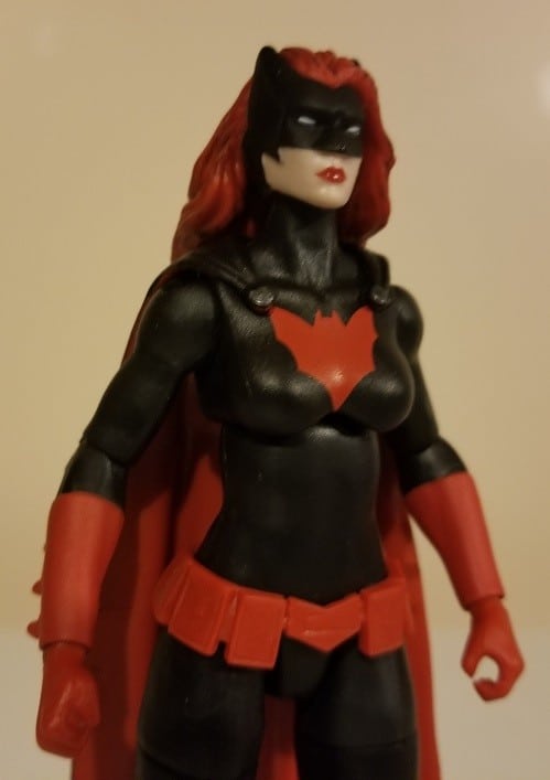 Batwoman and Green Lantern Jessica Cruz came from the spring/summer 2018 Clayface C&C series, and that’s a great set overall. With that one, DCM went all in on Rebirth. I vastly prefer those to the TV and film figures; in fact, I think that the overabundance of TV, Justice League film, and Dark Knight Returns figures really hurt the line. Some of those figures continue to hang in stores. While the face on Jessica Cruz isn’t the greatest, I’m simply delighted the figure exists at all. I took a picture of the back to show that the costume detail continued on both sides, which is great. The power battery is well-done, the power effects are okay, and it’s generally an agreeable figure. Batwoman is the superior of the two; the extra head is great, but the mask is particularly well-sculpted. It’s kind of shock to consider how few Kate Kane figures there have actually been between DC Direct/Collectibles and Mattel, so we should be glad that we got this one.
