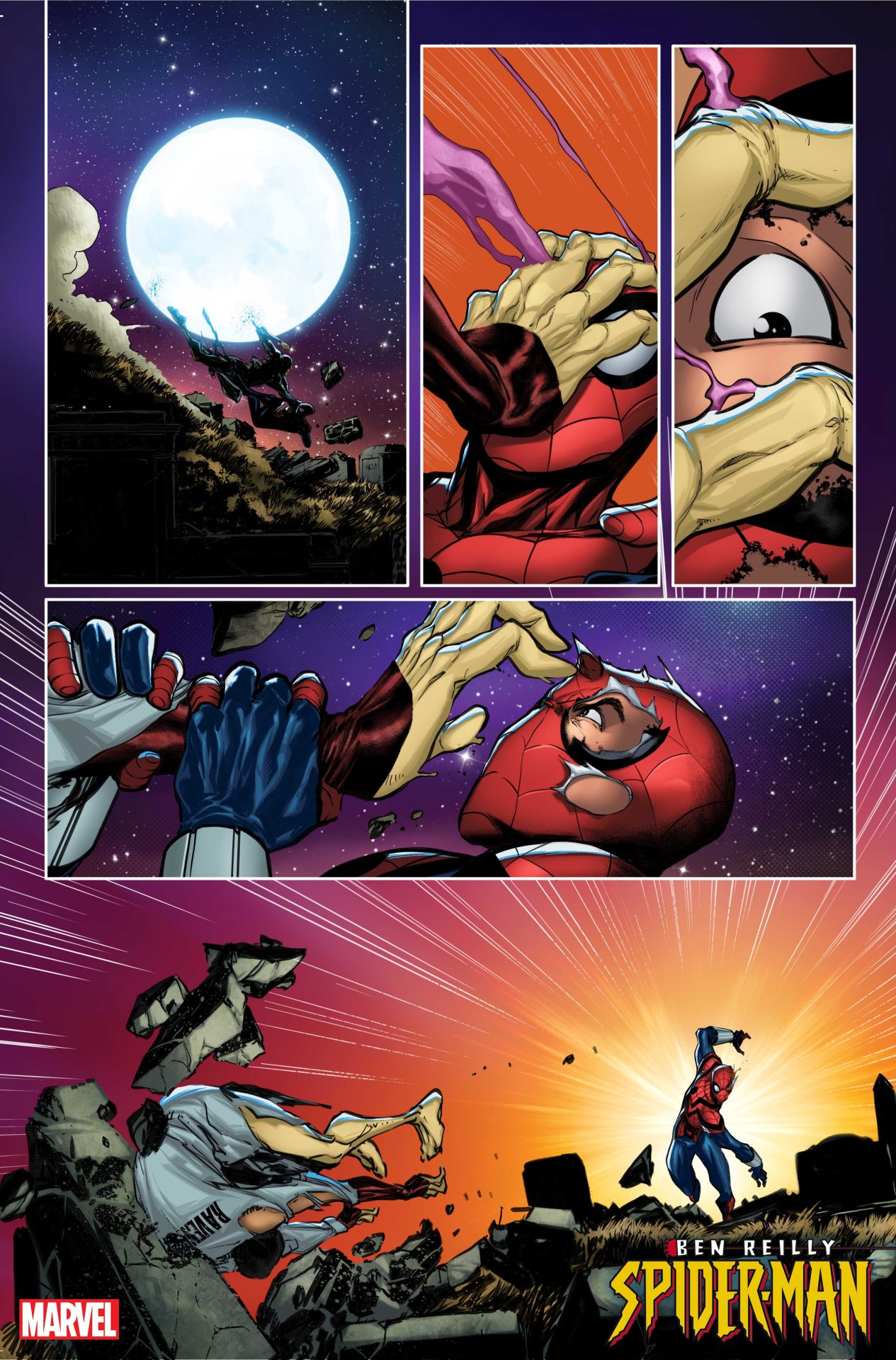 Not being familiar with the history, I’m sure there’s a lot I miss with Ben Reilly: Spider-Man #1. But, even not knowing a lot, it’s a hell of a comic that’s fun and enjoyable with a nice emotional punch to it. Taking us back to when Ben was the one true Spider-Man, the comic does a smart job of catching readers up to what the status was at this point in comics. But, it also moves things along at a brisk pace. The focus is Ben as a person as he struggles with his history and his role as Spider-Man. Is he the clone? Is he the real Peter? What should he do? Reilly delivers a hero who is the very definition of unsure of himself. He literally does not know who he is on multiple levels. It’s an interesting focus that can be dissected in so many different ways.