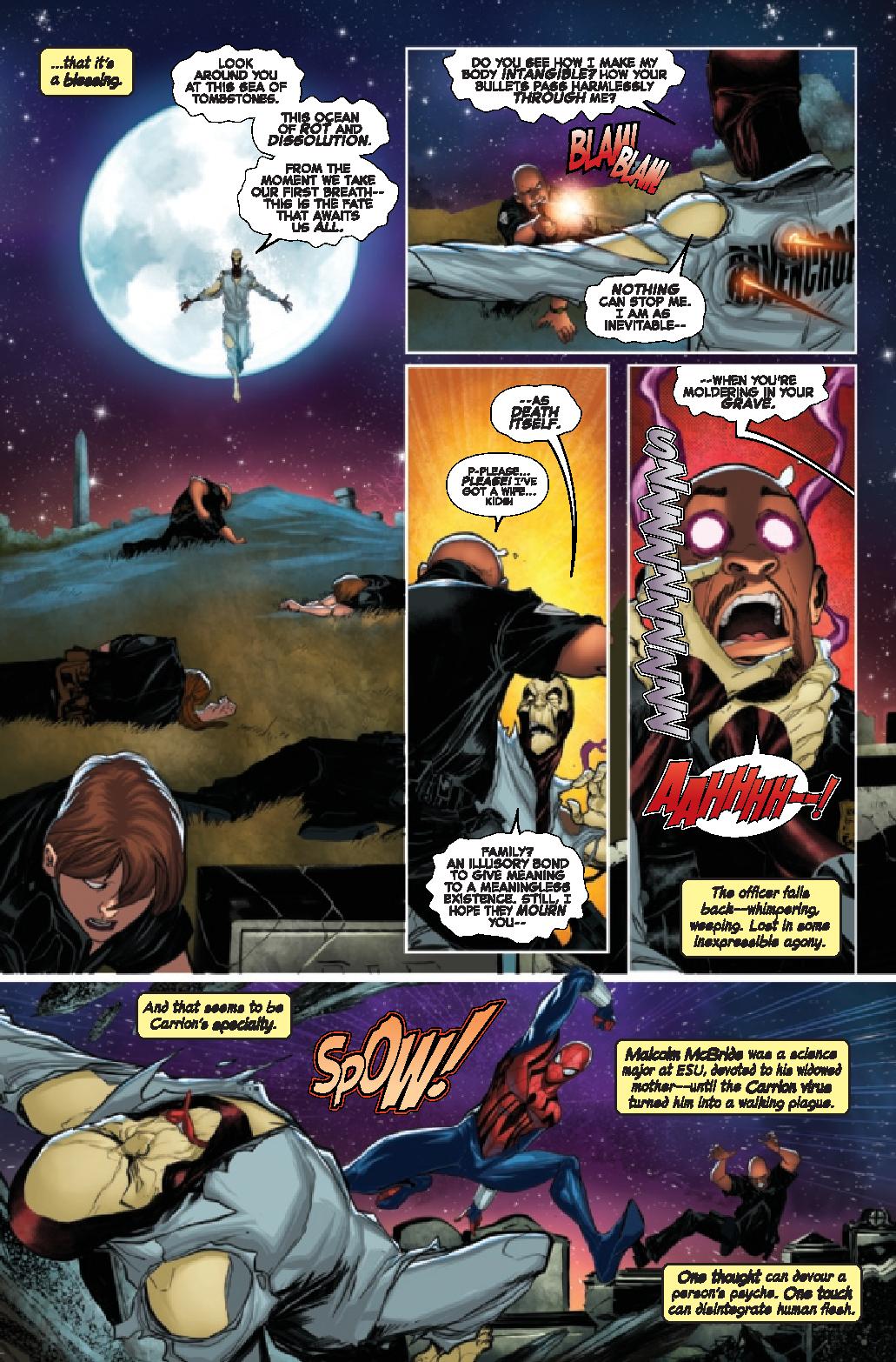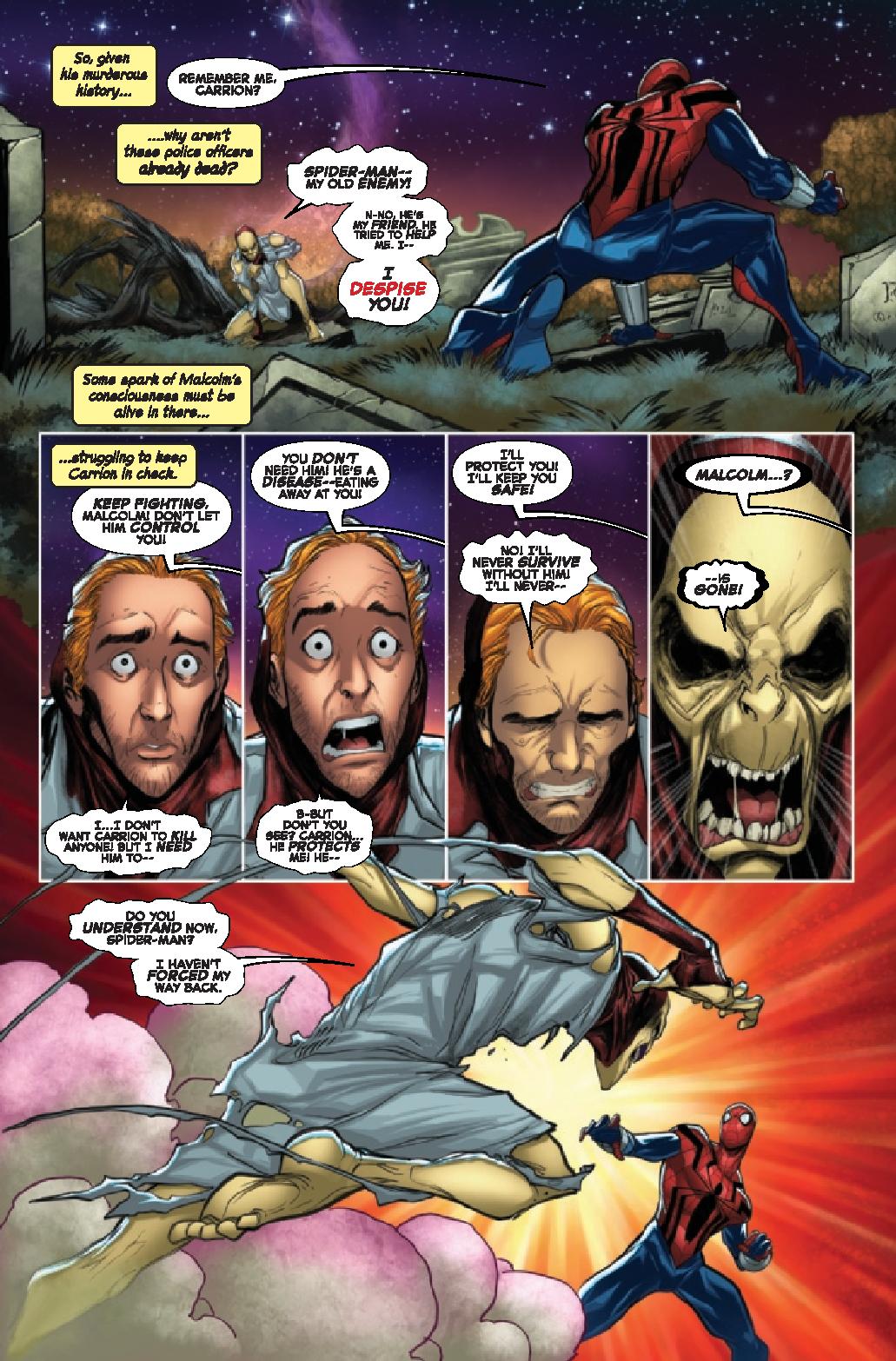 J.M. DeMatteis delivers so much more than that though. We get the setup of the villain to come, a killer who murders on the first date but also a battle with a villain. The battle feels very “classic Spider-Man” despite it being a “new” version of the character. He uses his fists and so much more to stop the villain and it delivers an emotional punch. It emphasizes this is a bit of a different Spider-Man in some ways and that DeMatteis is going to take us on a journey that explores Reilly as a person.