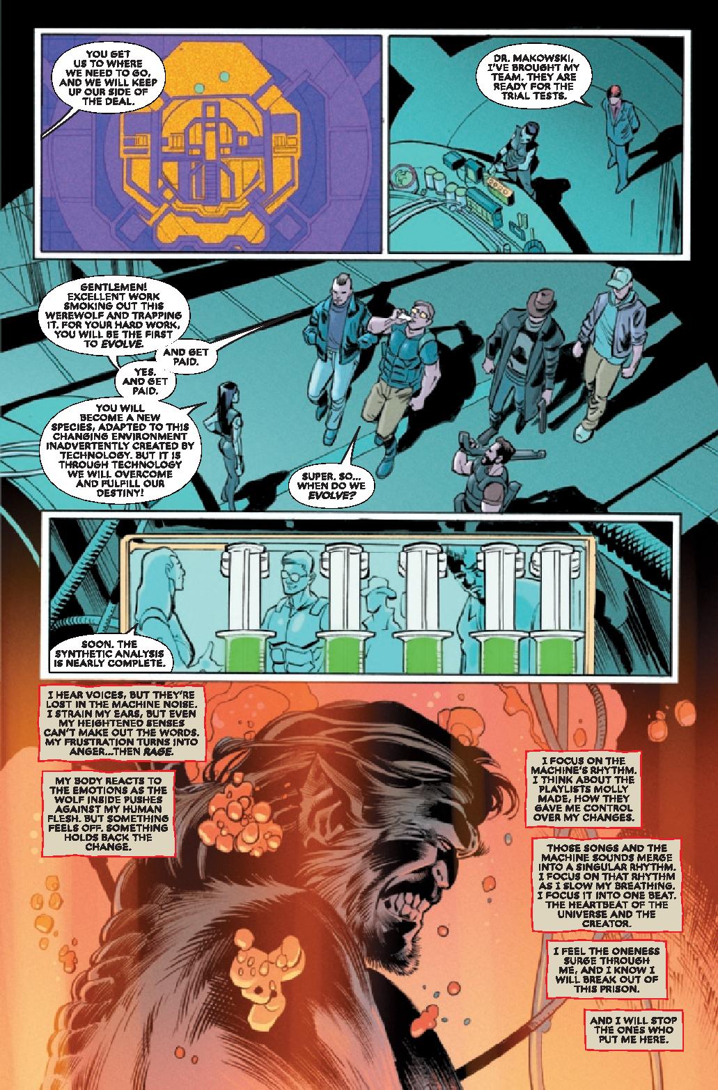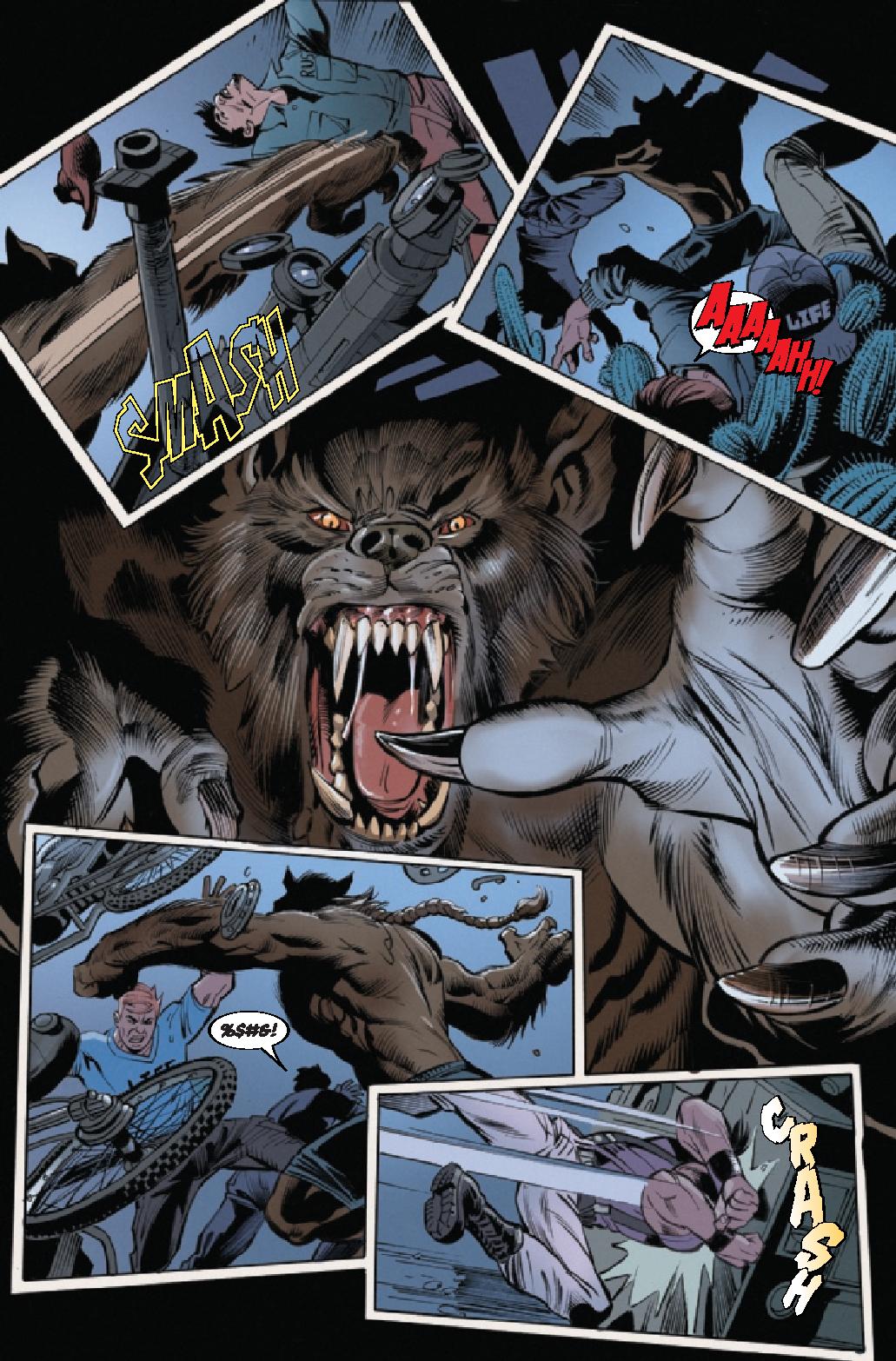 WOLF FIGHT! • Red Wolf and Werewolf by Night battle it out under an Arizona moon! • What is the true history of this werewolf curse? • Who really runs Life Pharmaceuticals, and what plans do they have for our heroes in that big glass tower?