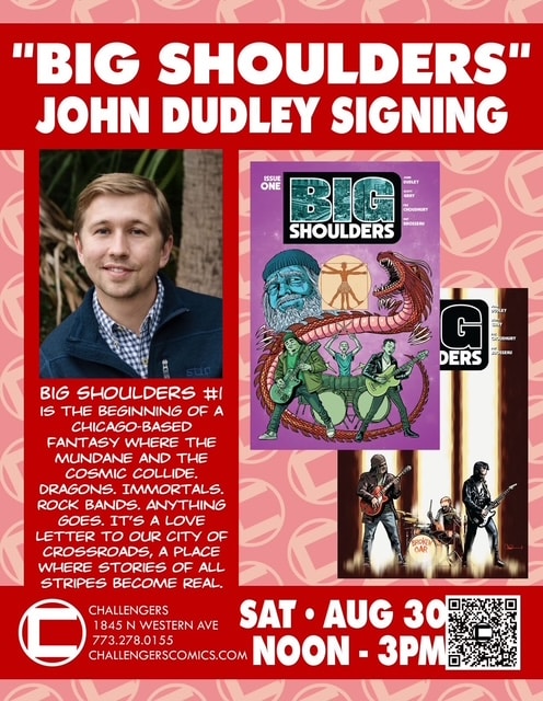 We ran a review of Big Shoulders #1 earlier today and you can get your copy at Challengers Comics this Saturday! Writer John Dudley is heading to the Chicago shop to celebrate the release of this Chicago-centric fantasy comic.