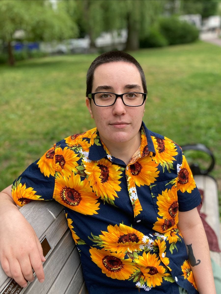 Liv Morris has been hawking stories at Harvard Book Store in Cambridge, MA, since 2019. She holds an MA in Children’s Literature and an MFA in Writing for Children from Simmons University and was a 2022 Lambda Literary Fellow. She grew up in Kentucky and now lives in Boston with her wife, cats (Bo and Pawl Simon), and dog (Diana Wynne Bones). Her manuscript is for middle grade readers.