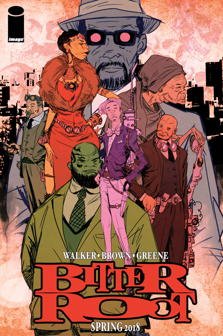 The Bitter Root series takes place in the 1920s while the Harlem Renaissance is in full swing and follows the Sangerye Family. Once the greatest family of monster hunters in the world, the Sangeryes must move beyond the tragedies of the past, or be forced to sit back and watch an unimaginable evil ravage the human race.