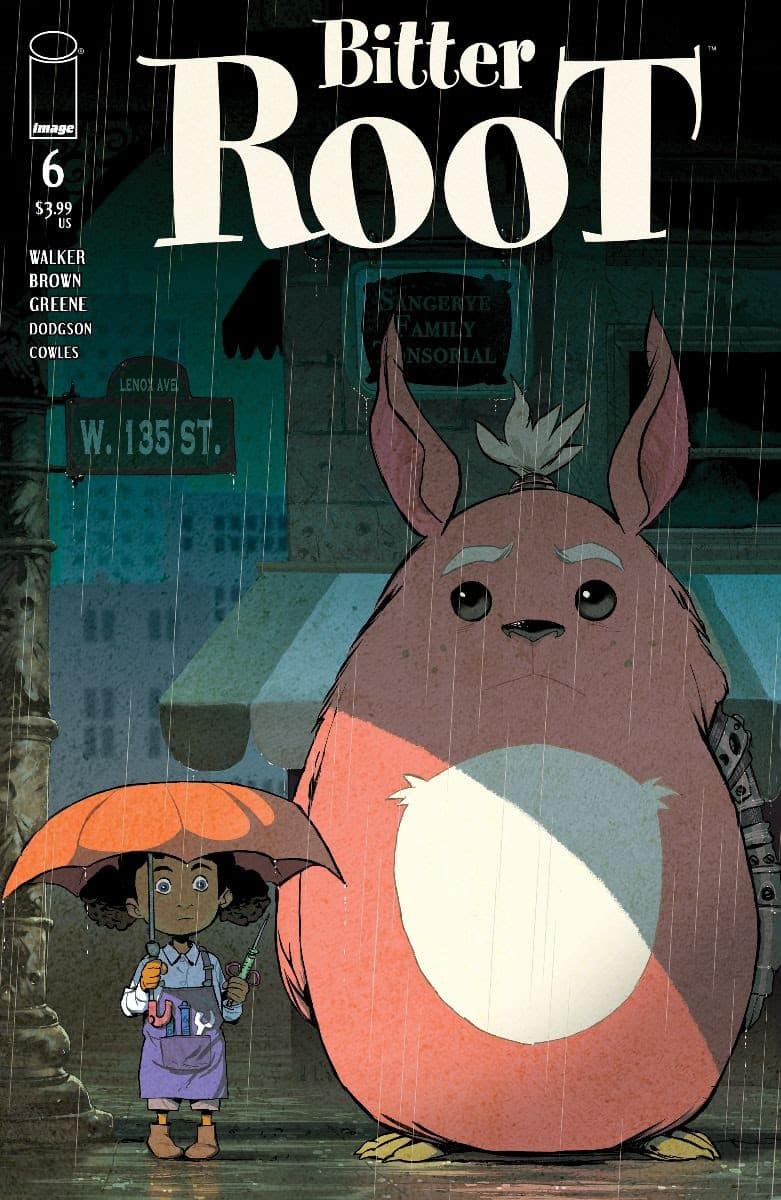 Bestselling, Eisner Award nominated artist Sanford Greene pays homage to popular Miyazaki film, My Neighbor Totoro, in forthcoming Bitter Root #6 by David F. Walker, Chuck Brown, and Greene.