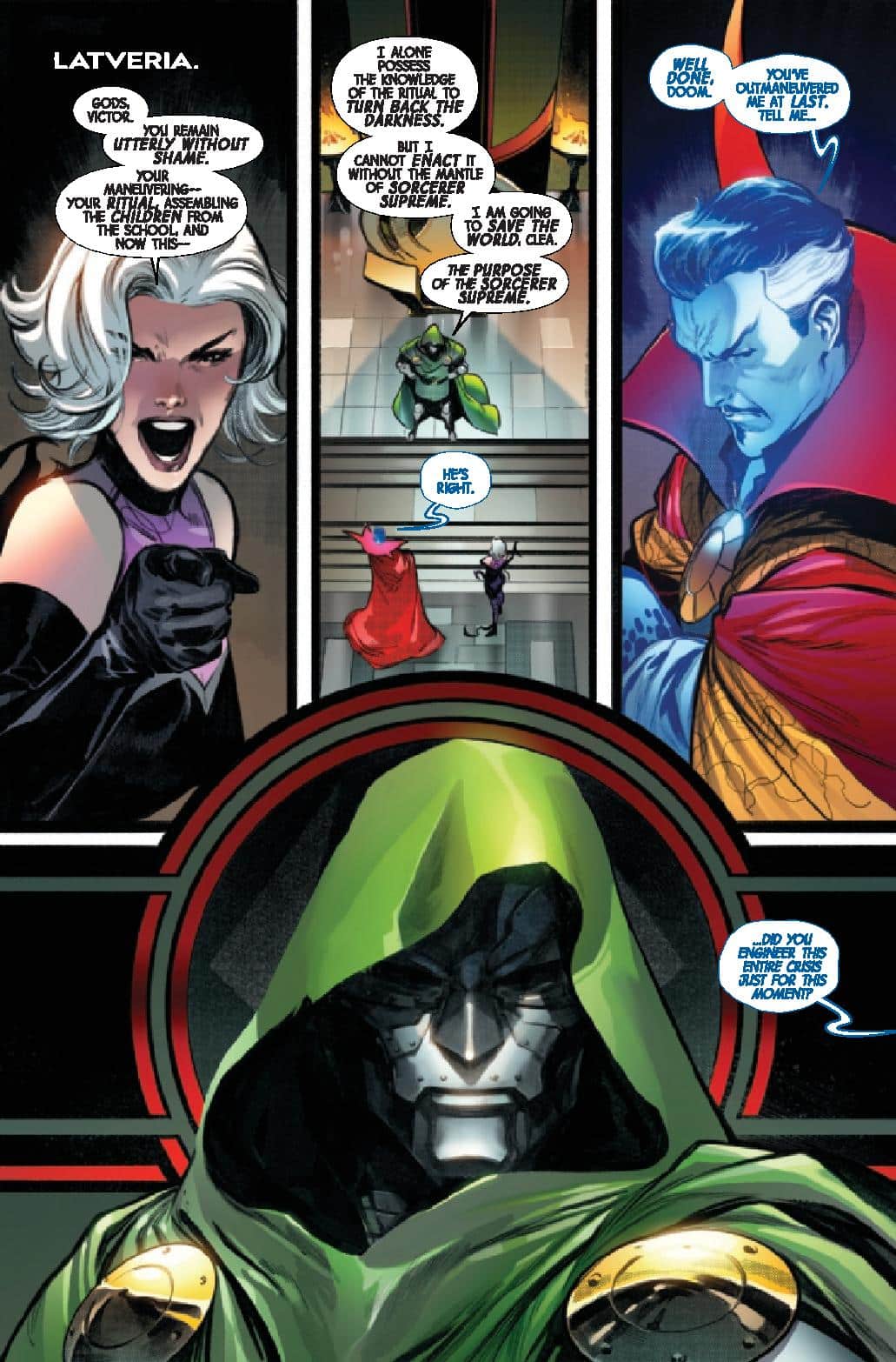 Across the world, Strange is struggling himself, he has to decide how much to trust Doctor Doom who has said he needs to be made the Sorcerer Supreme to cast his spell and end the vampire threat. This actually delivers some quandaries as to how much Doom can be trusted and how far everyone needs to go. With the Avengers team, a debate rages as well as to what should be done and if their actions will hurt innocent individuals who will be hurt.