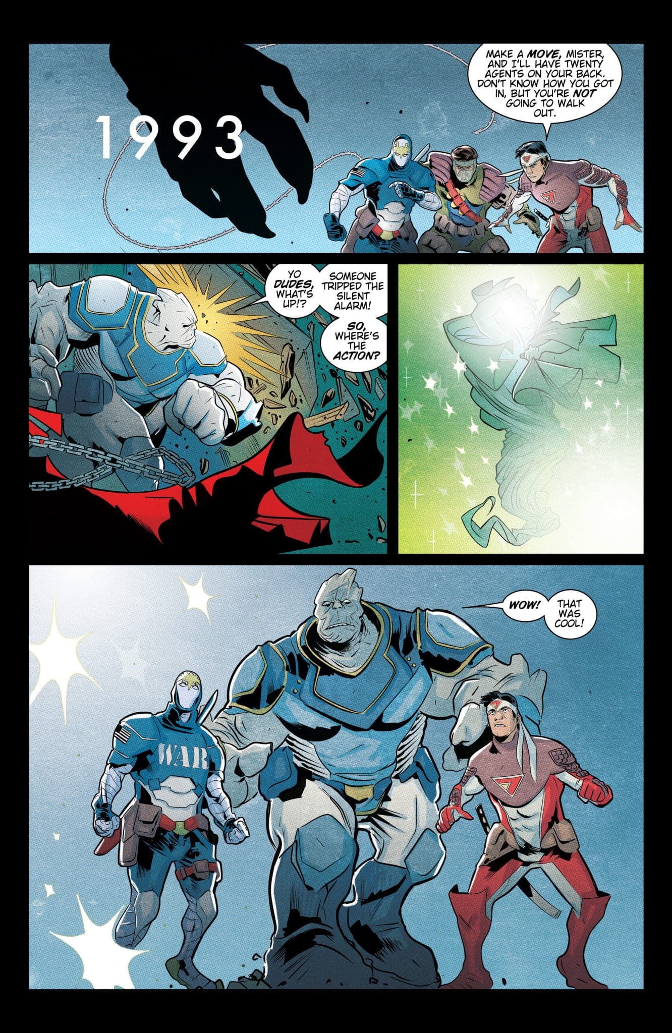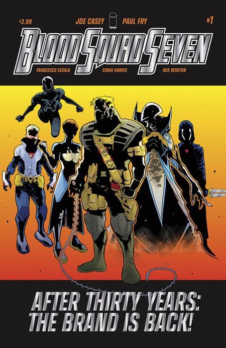 While deconstructions of superhero nostalgia typically center around the classic characters of the Silver Age, Blood Squad Seven delves deep into ’90s comic book themes with this reimagining of what would happen if heroes from that decade returned to action after a 30-year absence.