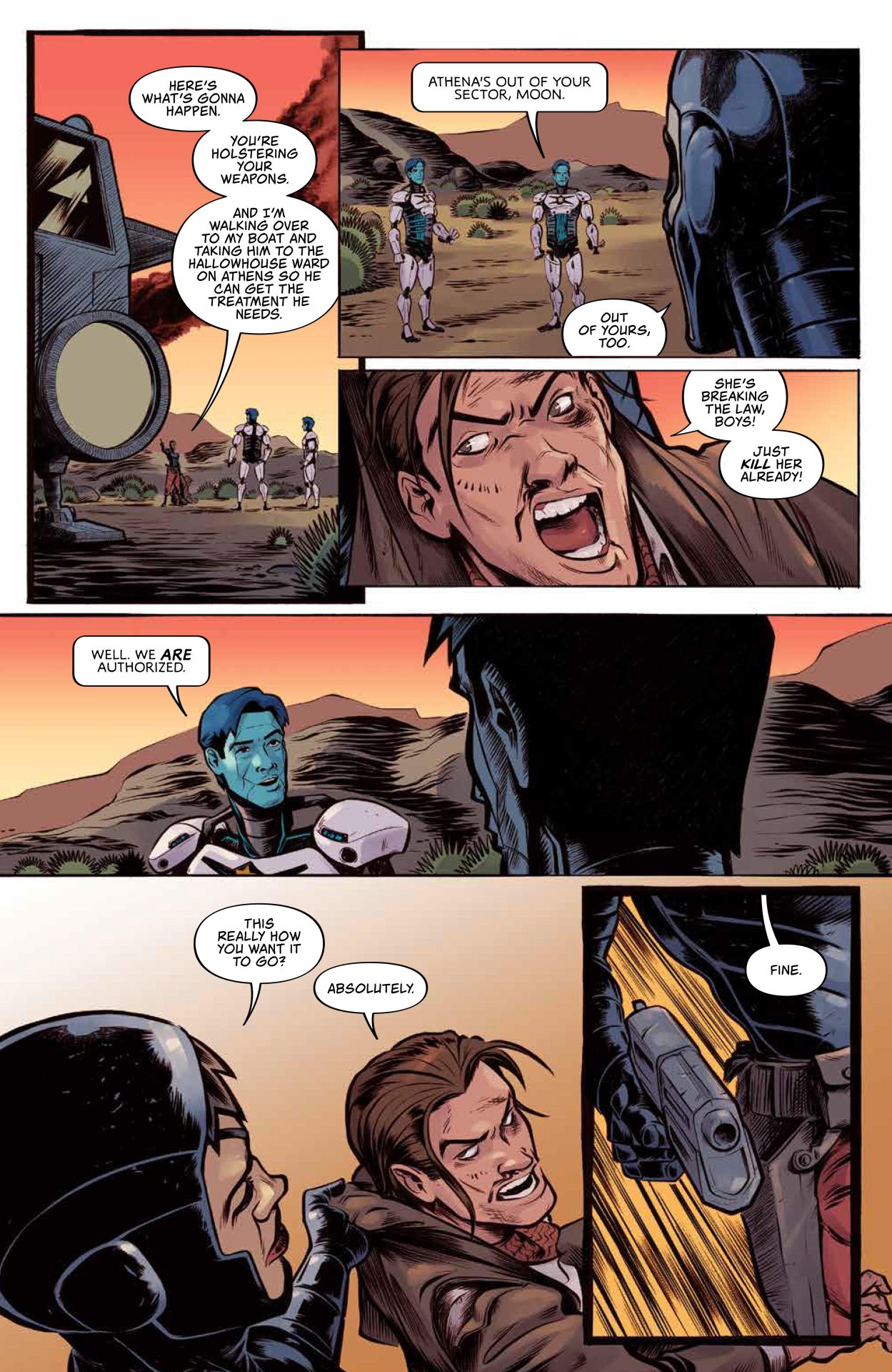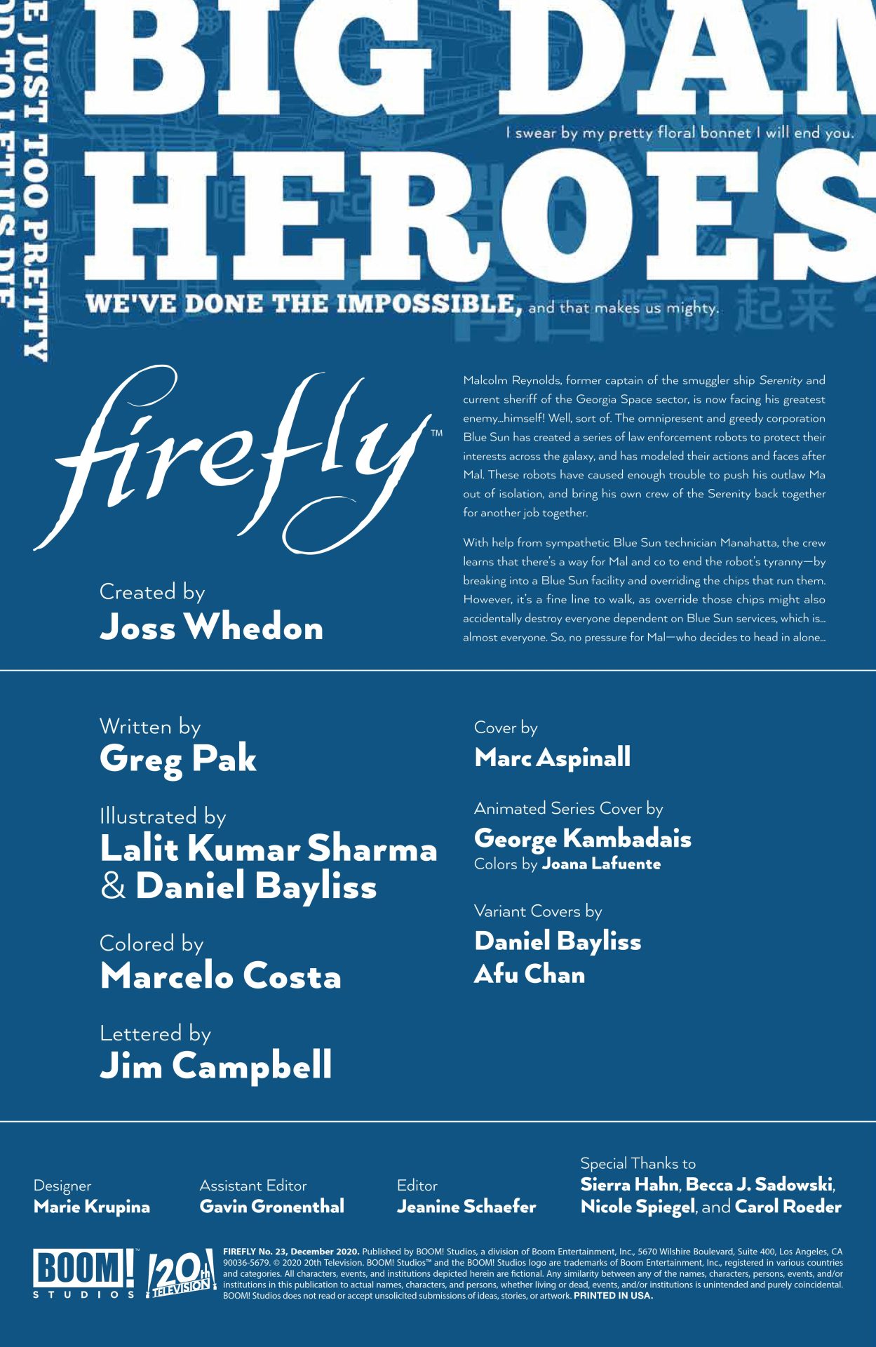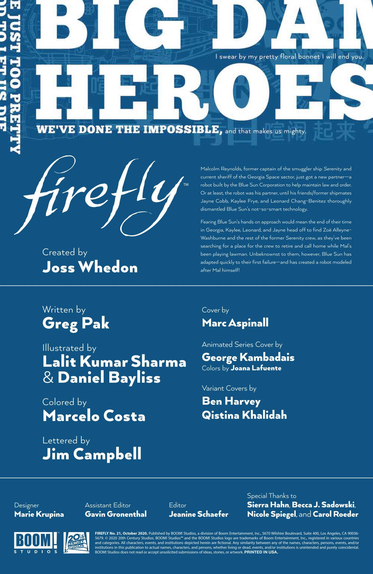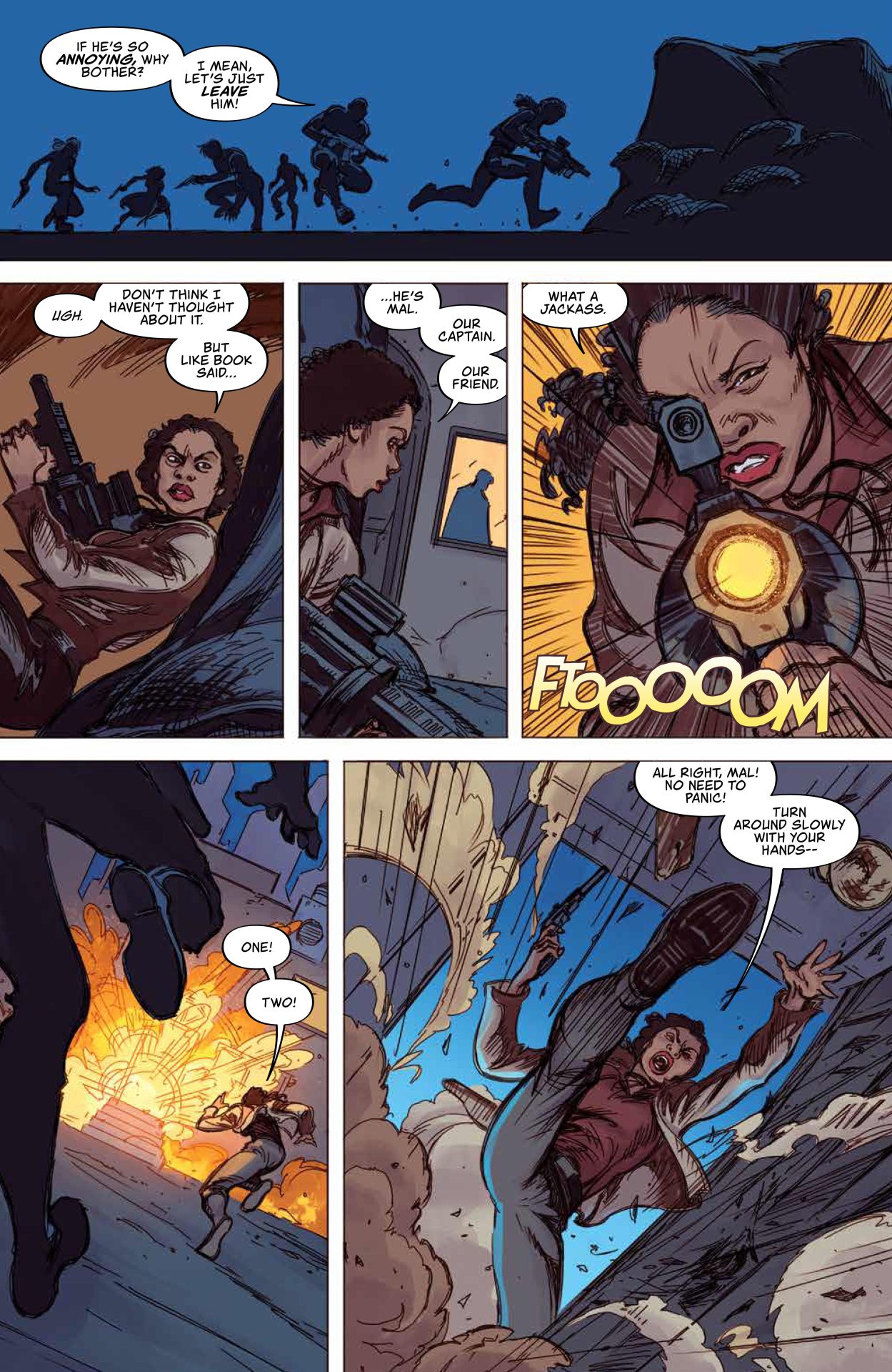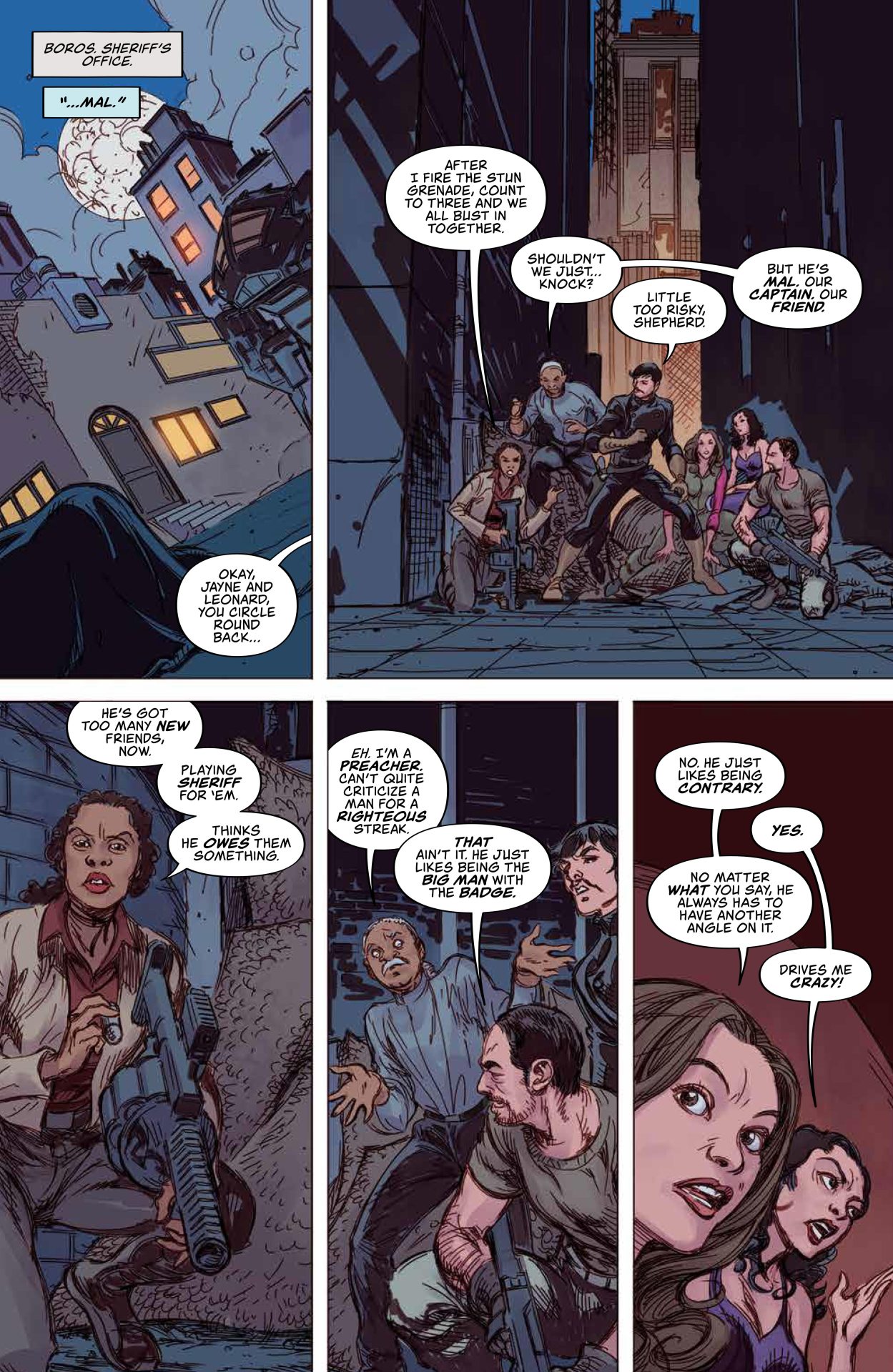 Shocking losses lead to stunning decisions as Mal and the crew of Serenity must face the consequences of their choices in war against the Blue Sun Corporation.