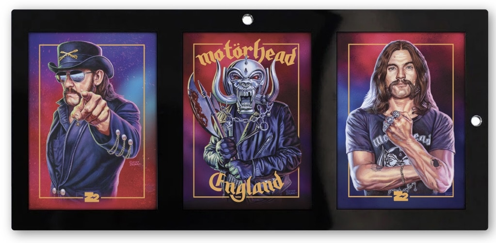 Like all Z2 collaborations, this book comes in a variety of highly-collectible editions, including the 1:5 “All-Access” Edition which features a framed AAA Artist Pass from Lemmy’s 70th birthday party at the Whisky A Go-Go; and the 1:25 “Backstage” Edition that comes with a framed original 2012-2013 Motörhead tour laminate. All of these artifacts are from the personal collection of Lemmy Kilmister. The “No Remorse” editions of the book will come with an exclusive white vinyl variant of the legendary Motörhead double LP, No Remorse, a poster triptych set by renowned designer Hydro74, and a three-card collectors set presented in a custom frame featuring the art of the iconic thrash-metal painter Ed Repka.