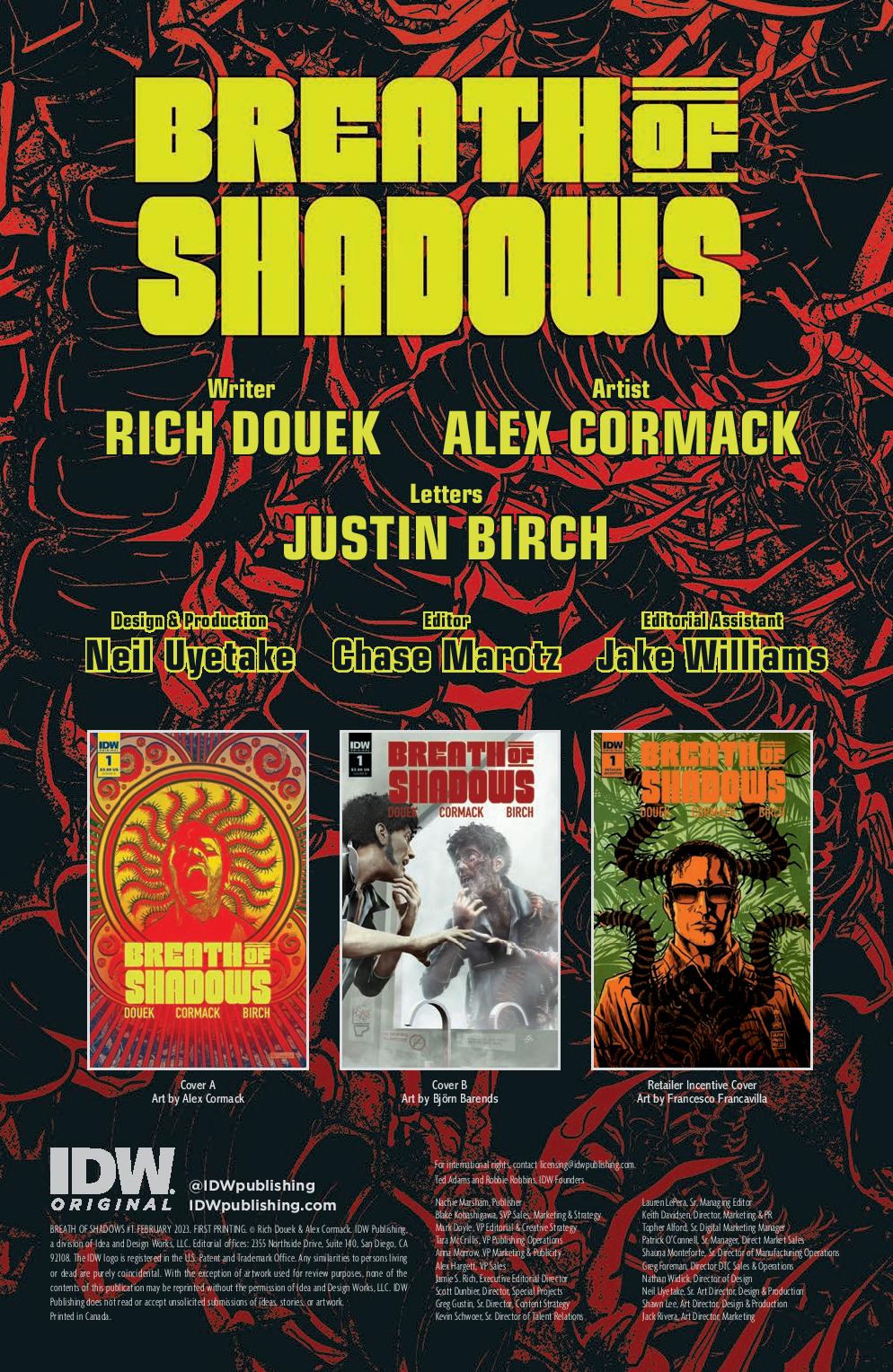 Breath of Shadows #1 (IDW Publishing) – Jimmy should be on top of the world with his recent album but he wants to go clean and kick the drugs. Is clean living actually in Jimmy’s future, or will he instead unleash horrors beyond his wildest nightmares?